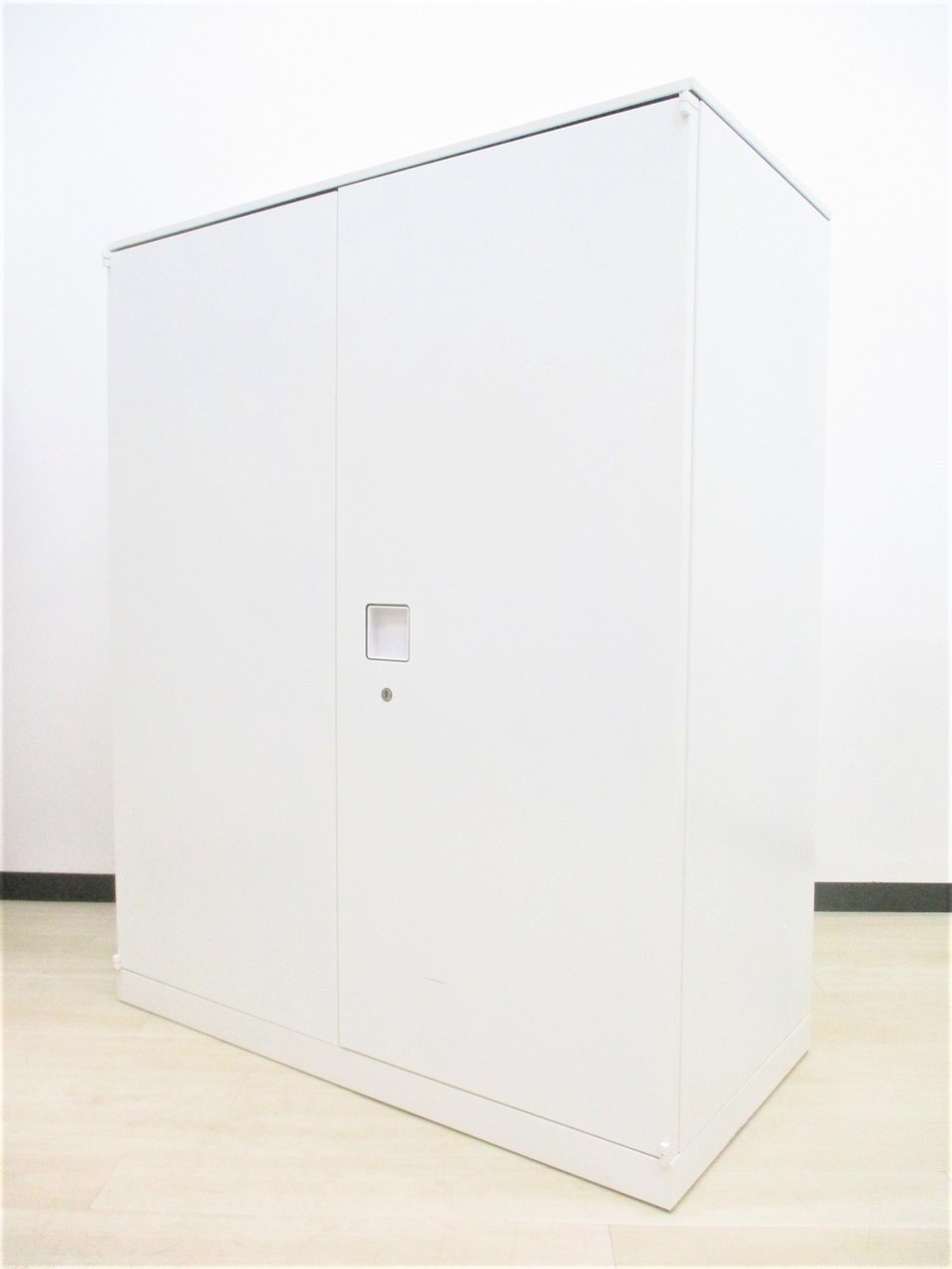 【オフィスの書類をスッキリ整理!取っ手がどの方向からでも開くマルチハンドルが人気!】■オカムラ(okamura)製 レクトラインシリーズ ローキャビネット 両開き書庫 H1250㎜ ■ホワイト ■シリンダー錠