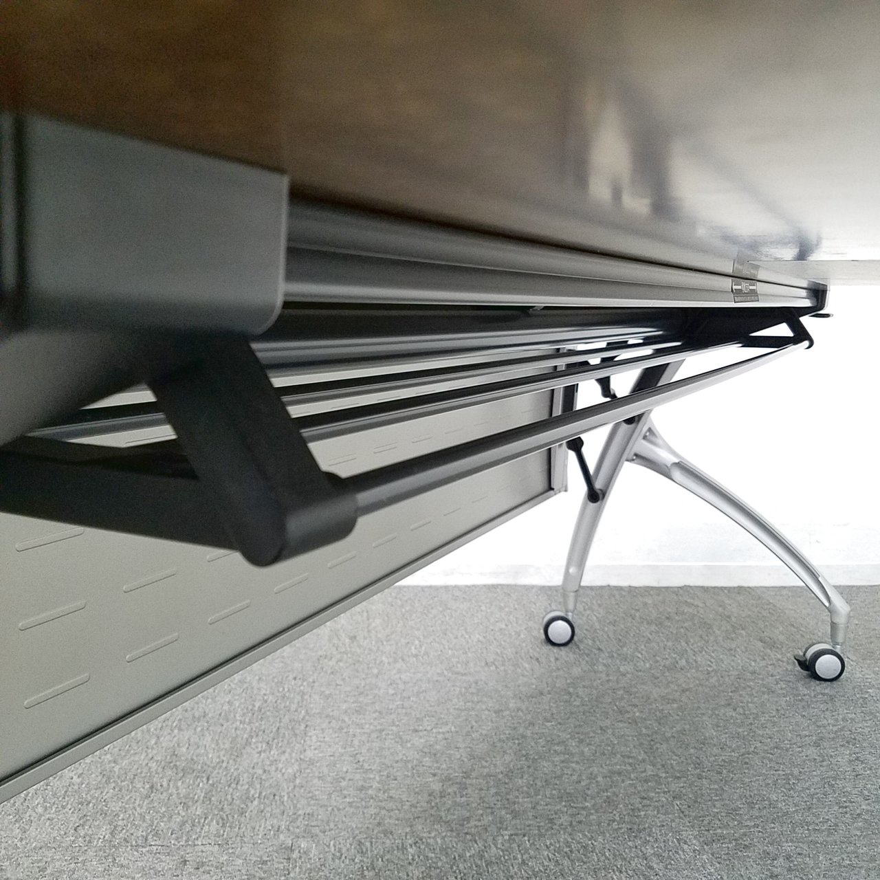 スタイリッシュで上質なデザイン! 幕板付きで女性も安心な高品質サイドスタックテーブル! ■イトーキ/リリッシュ2/ファインウォールナット フラップテーブル 幕板パネル付 W1800×D600×H700mm 木目柄天板