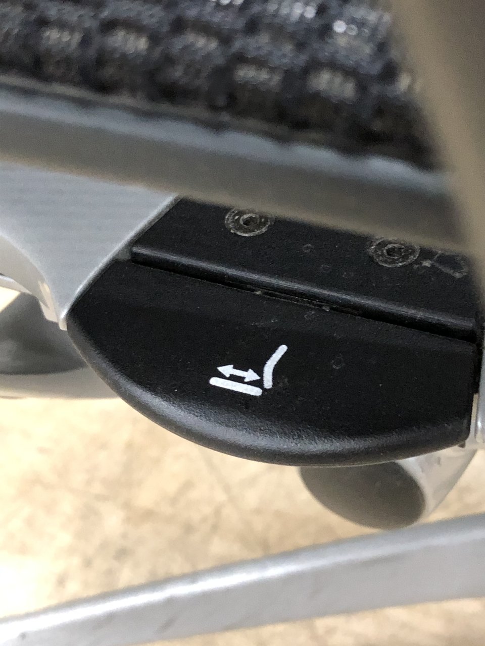 - ロッキングの強弱を調整するダイヤルがございます。体型に合わせてリクライニングの固さを座ったままで調整できます。