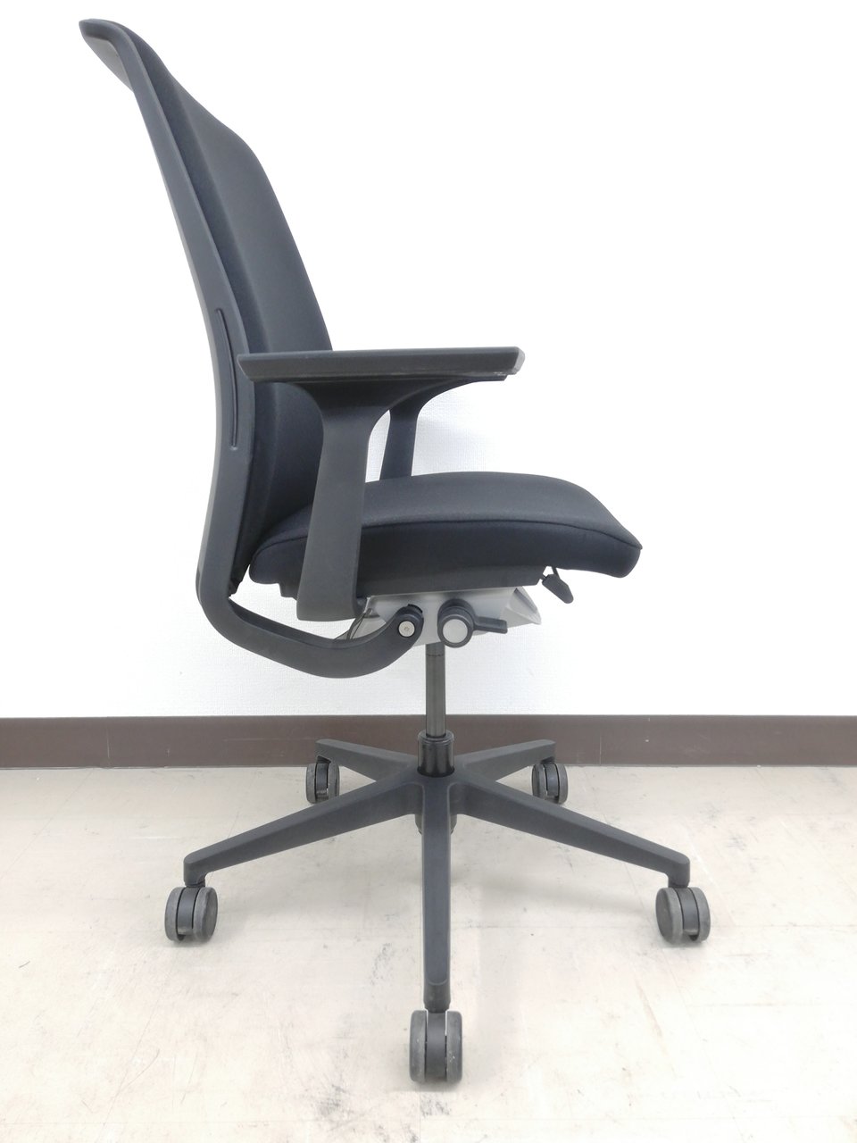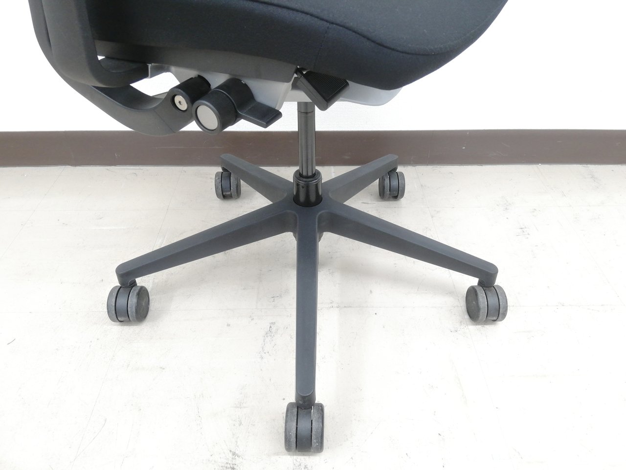 快適な座り心地に不可欠な調節機能である、上下昇降、座面の奥行き調整、リクライニングなどを備えており、操作もわかりやすく好評です。 特に、座面の奥行きは、座面下の左右に通った細いバーで調整でき、座ったままで軽やかに滑るように調整が可能です。 価格面では、新品では高めですが、中古は流通も多く、定価の3割前後の価格で高級チェアの座り心地を手に入れることができます!