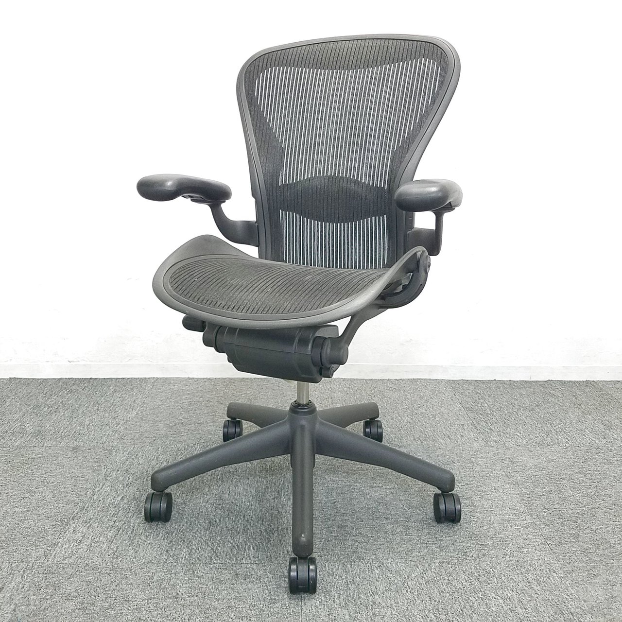 【★状態イマイチのためお安く!】■ハーマンミラー製 アーロンチェア Bサイズ 固定肘 ※キズあり・ランバーサポート無・昇降ガス圧弱めのためお安く!【訳あり特価品】