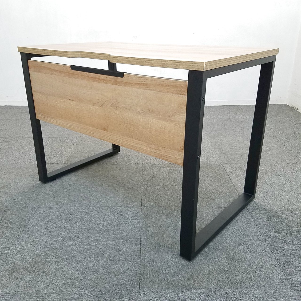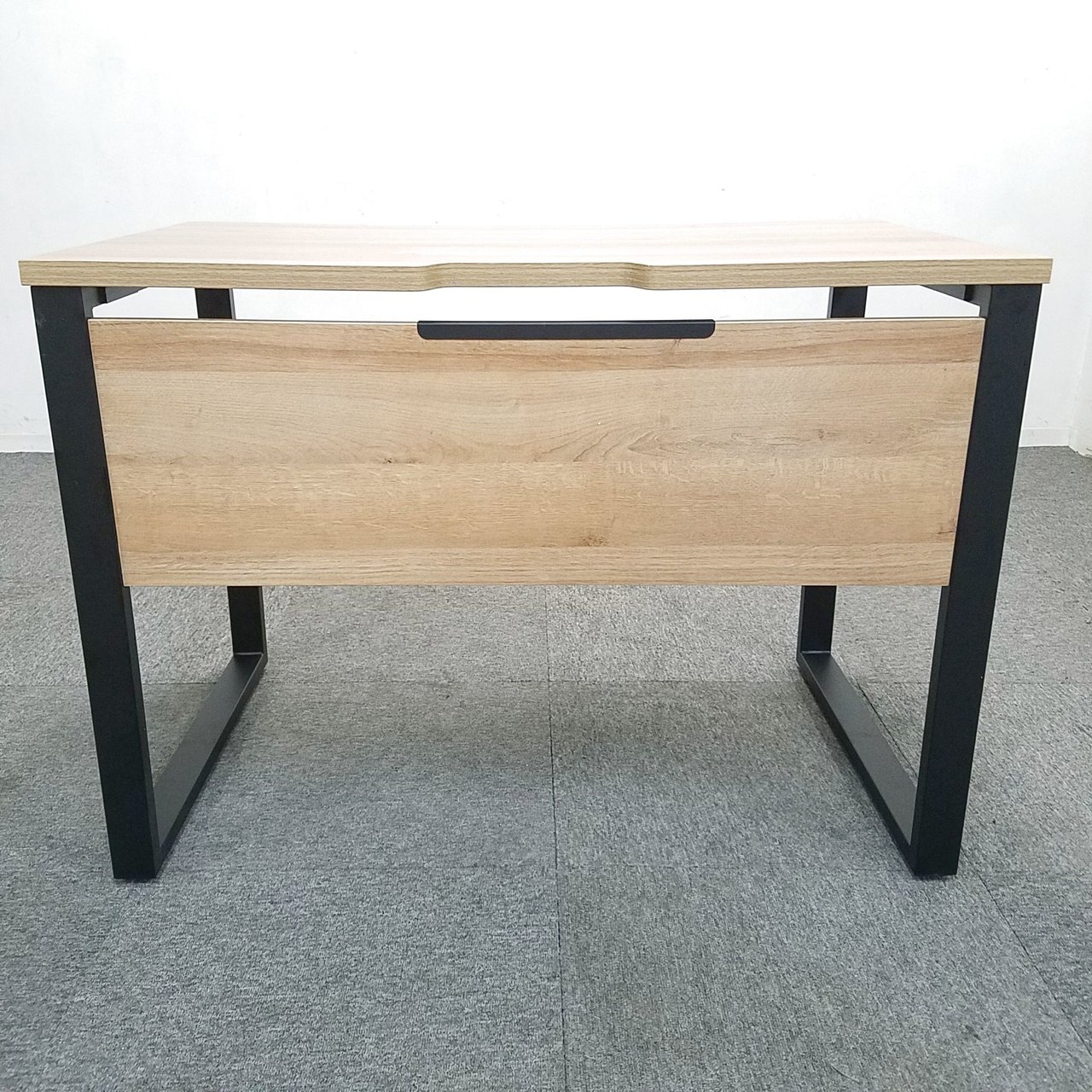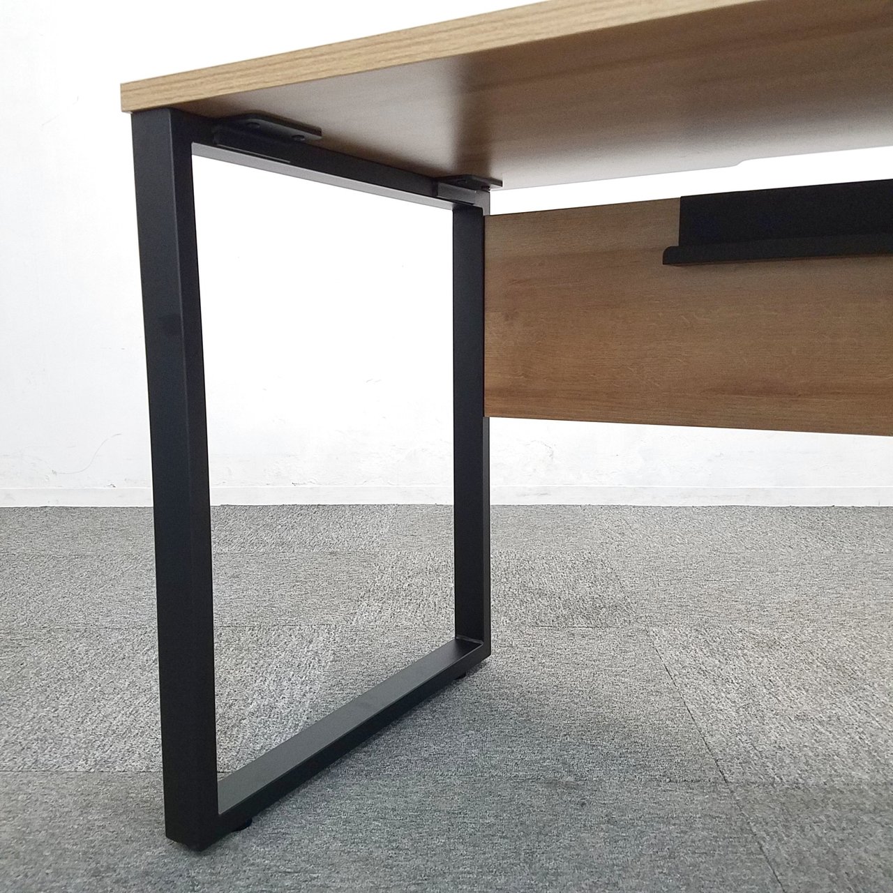 【テレワークにお勧め!】ブラックフレームに木目調がお洒落!ご自宅でもご使用可能! オフィス 家具 デスク ワークデスク 平机 オフィス 事務机【大量注文可能】- 大阪・堺店