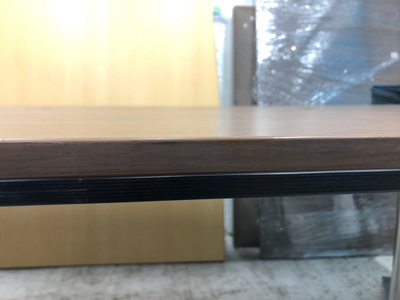 - あり黄ばみ・変色が広い範囲にうっすらある、または濃い黄ばみ・変色が一部ある。(例、天板、幕板、棚板、サイド部分、脚部等にある。)