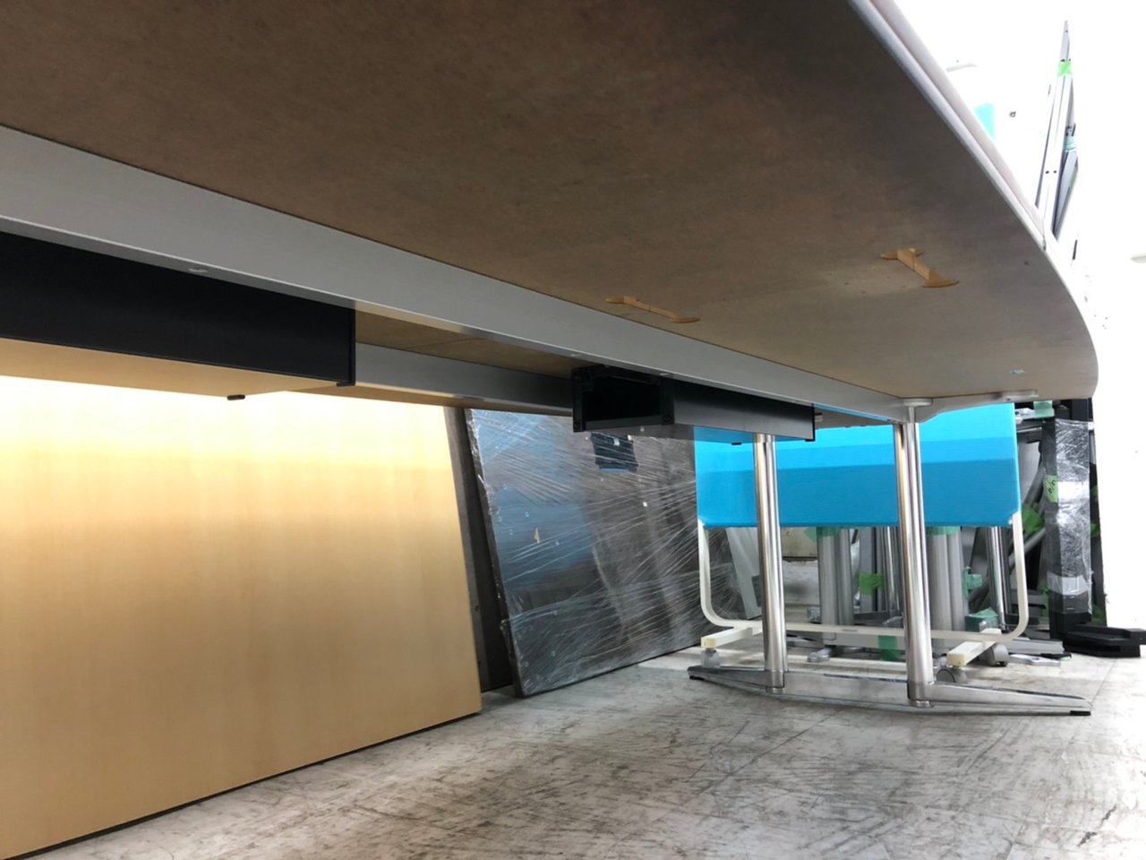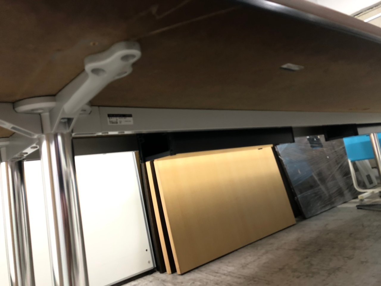 - 一部不具合あり天板歪み、アジャスター無し、キャスター使用不可ようなそのテーブルの本来の効用を果たすための機能以外の一部が使用不可な状態。(例、キャスターロッ ク機能使用不可、棚板無し等がある。)
