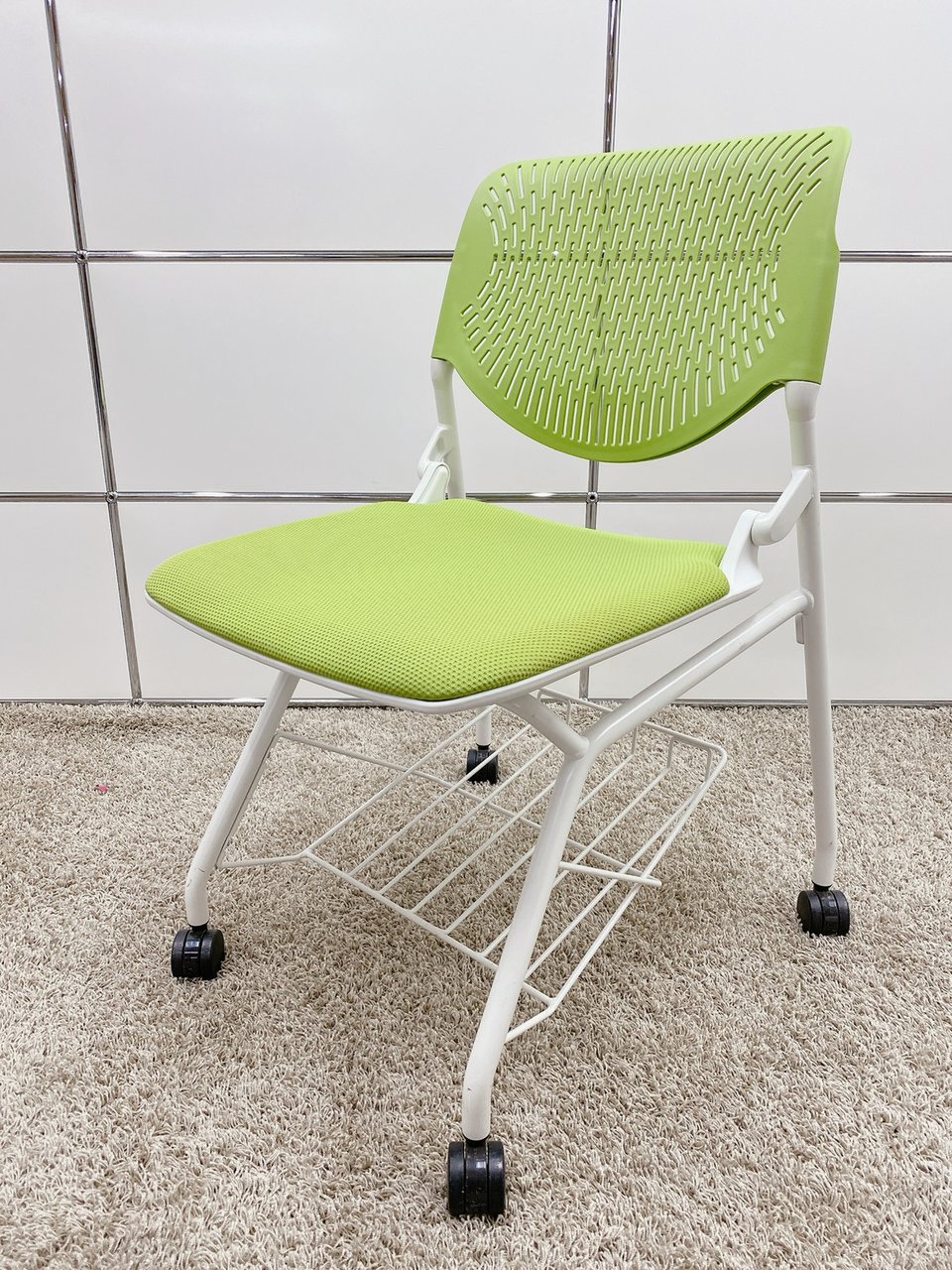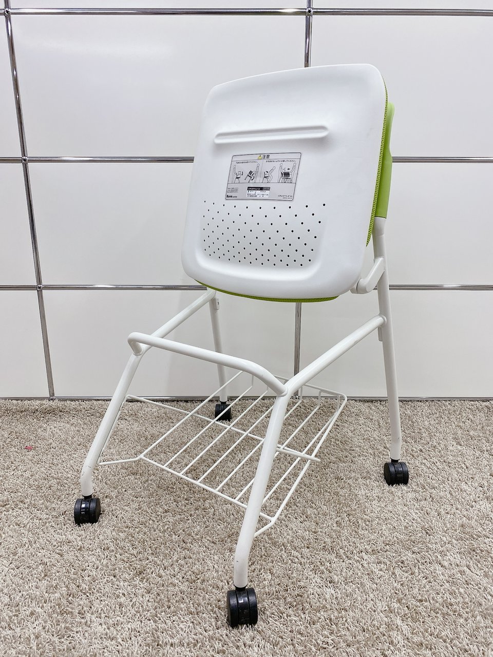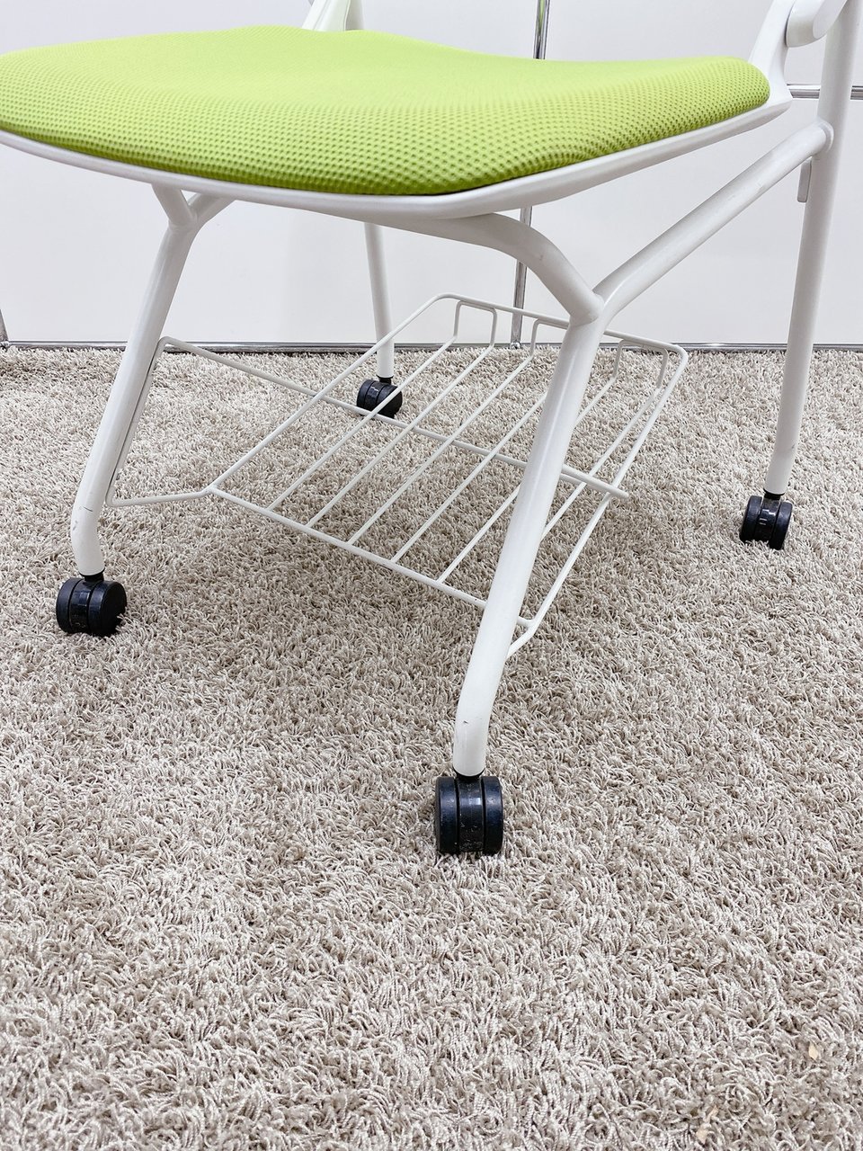 【T11】【T10】【商品入替のため、残り6脚限り】オカムラ製 ルナシリーズ ライムグリーン ホワイトフレーム 軽快なデザインが人気 ネスティングチェア!!