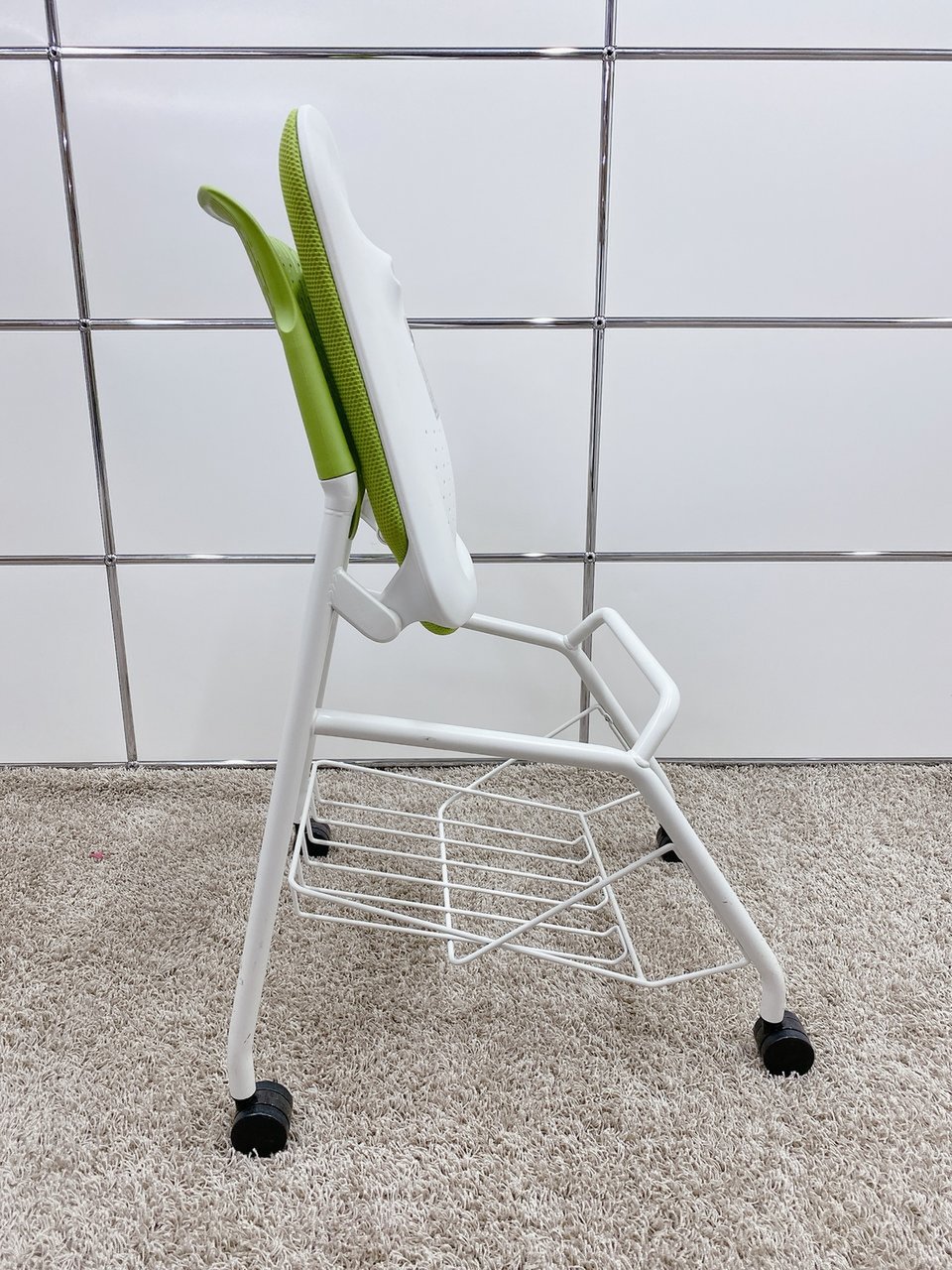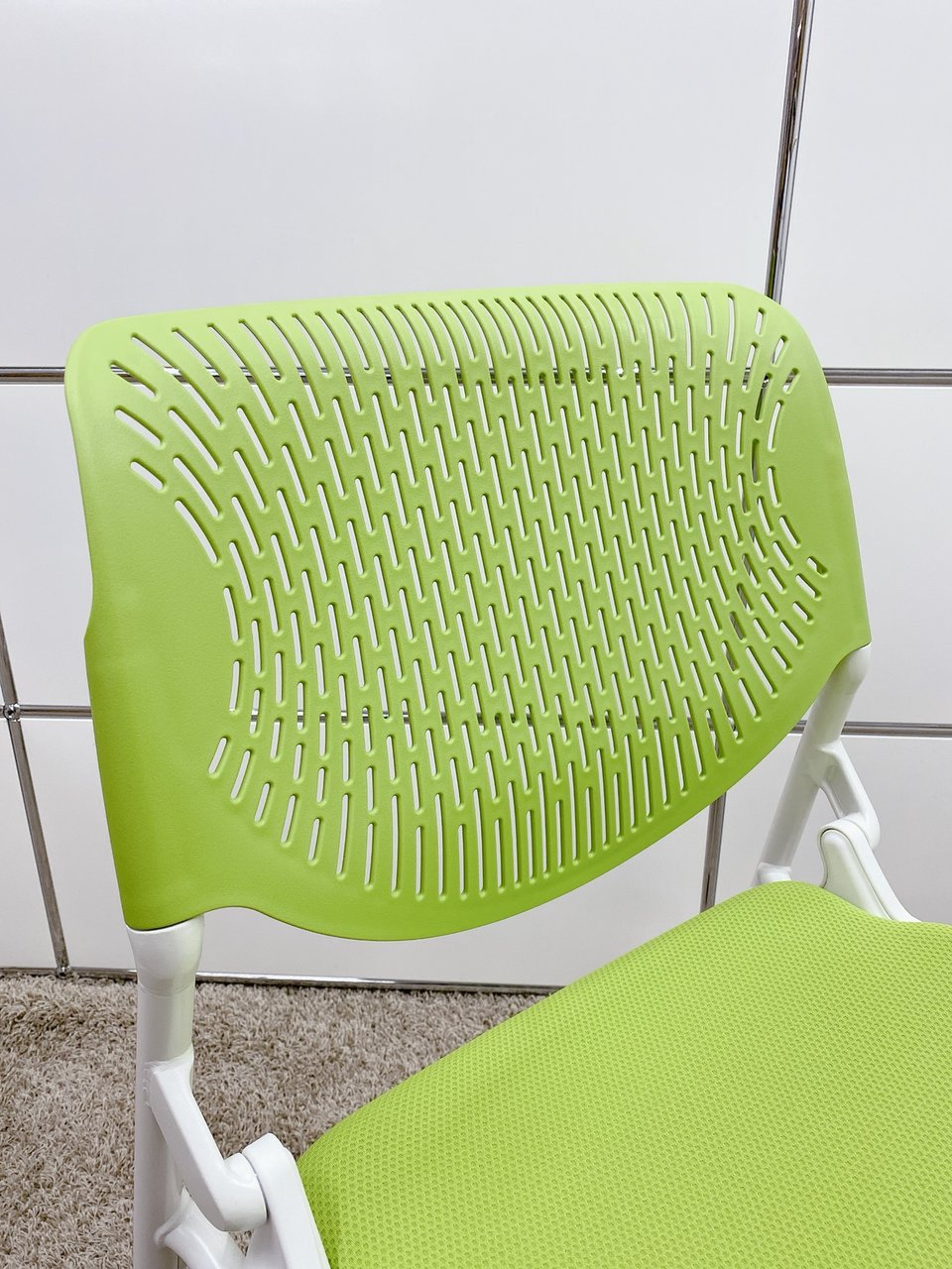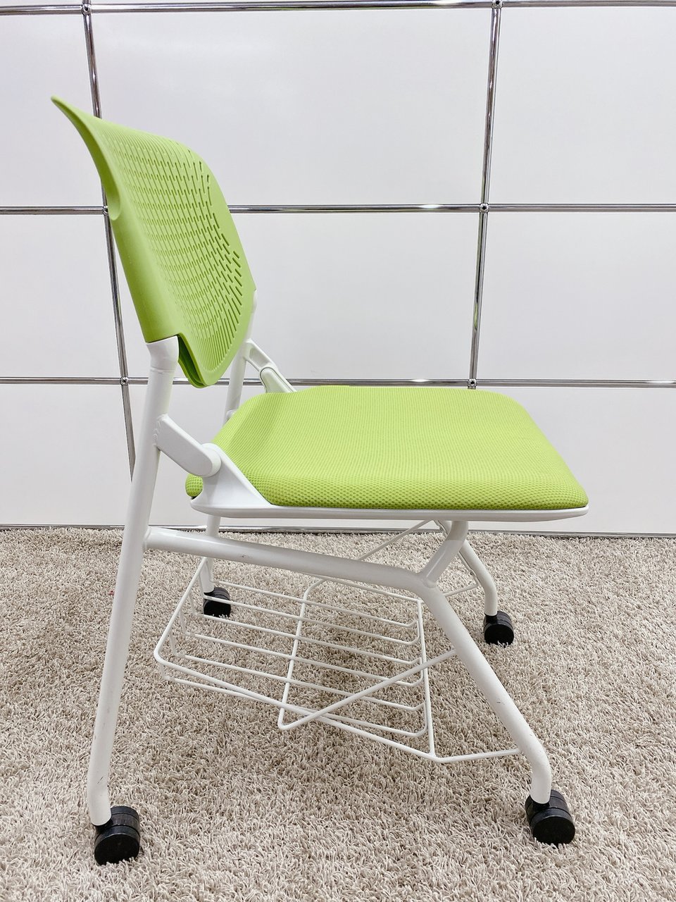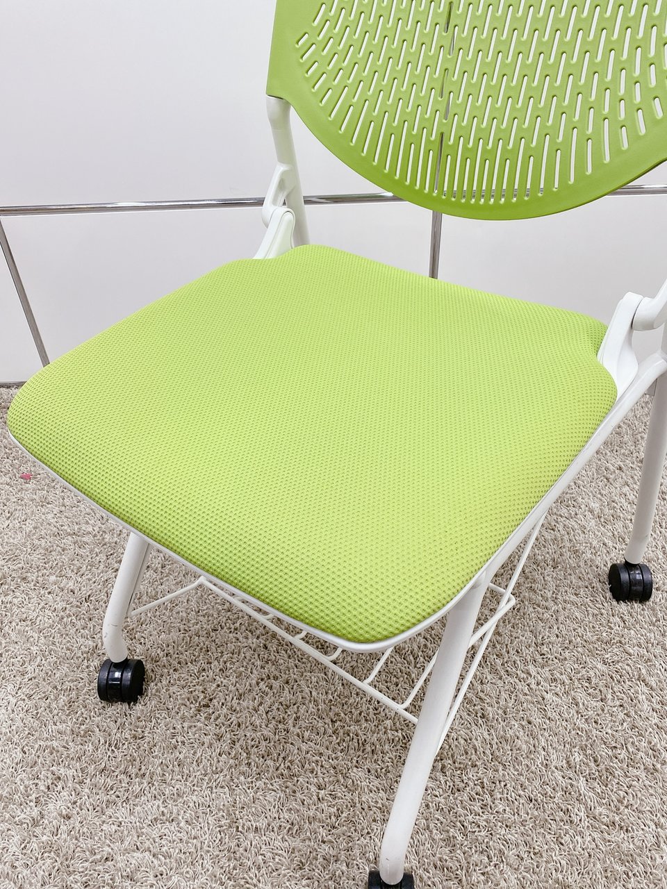 【T11】【T10】【商品入替のため、残り6脚限り】オカムラ製 ルナシリーズ ライムグリーン ホワイトフレーム 軽快なデザインが人気 ネスティングチェア!!