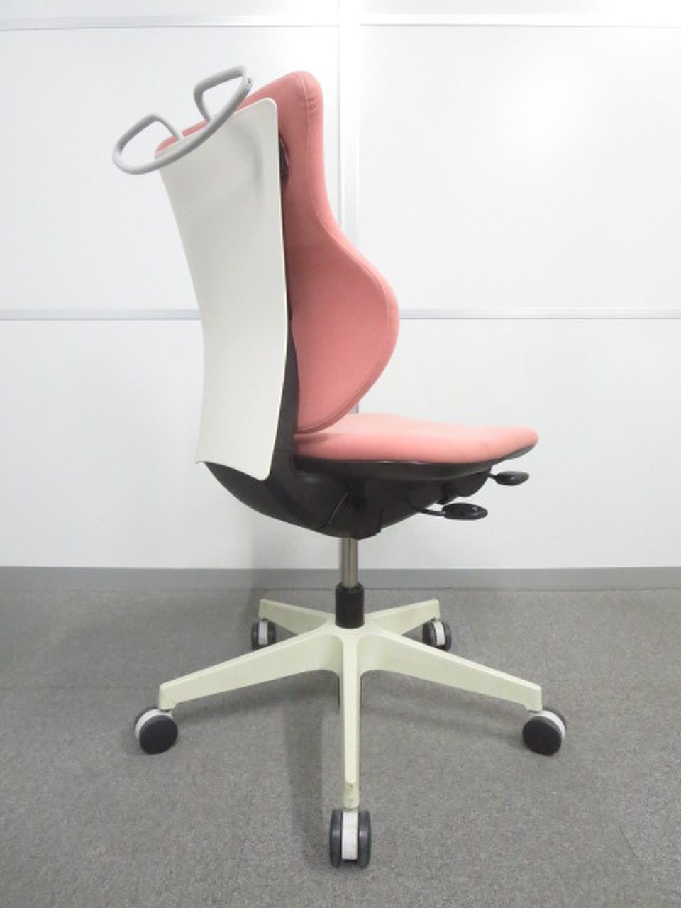 - 女性の作業姿勢に多く見られる2つの姿勢を、美しく支える背もたれ形状です。後傾しても背のラインを崩しません。