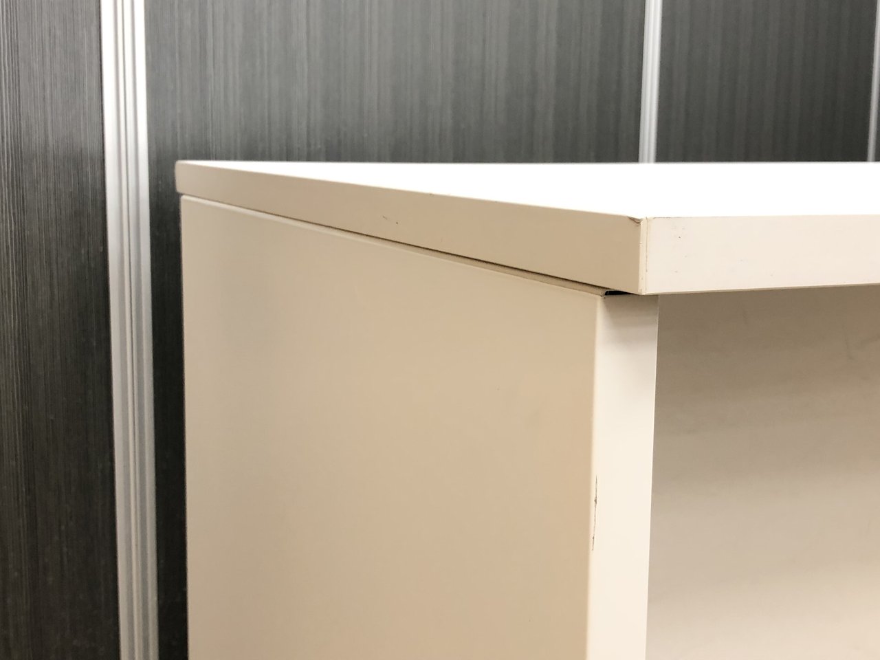 - 一部不具合あり天板歪み、引出開閉不可、アジャスター無し、施錠不可のようにそのカウンターの本来の効用を果たすための機能以外の一部が使用不可な状態。(例、引出が 開閉しづらい等がある。)