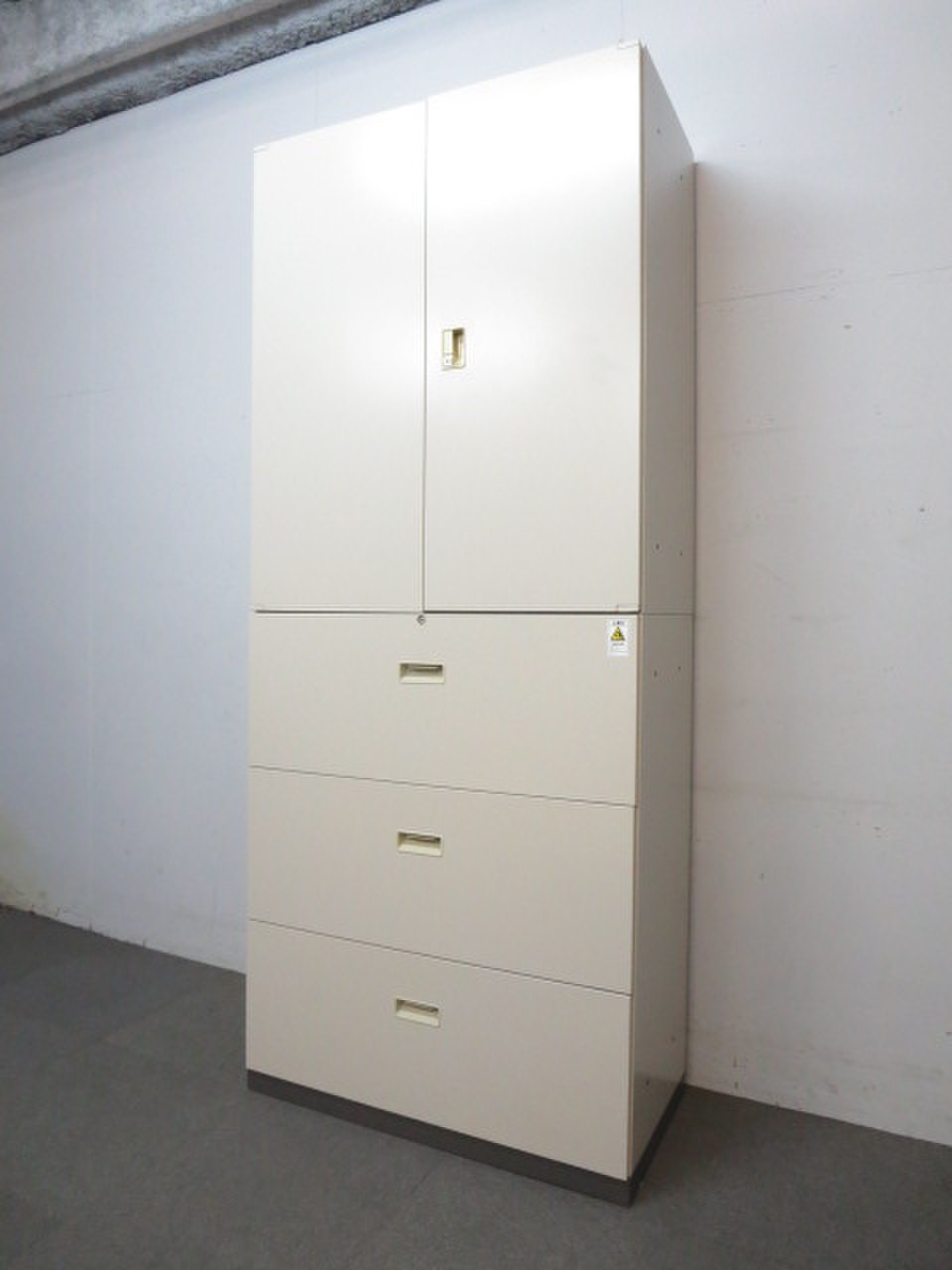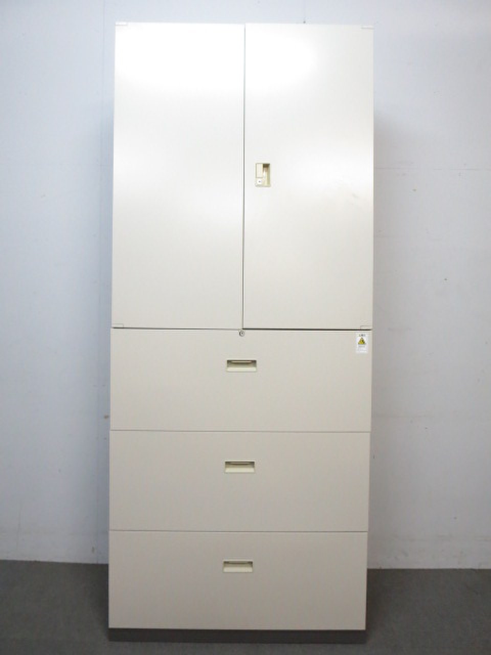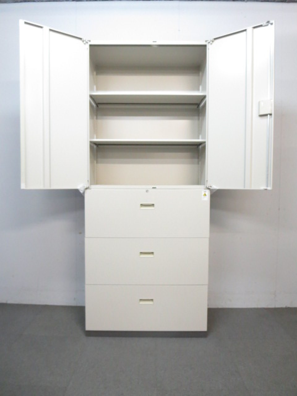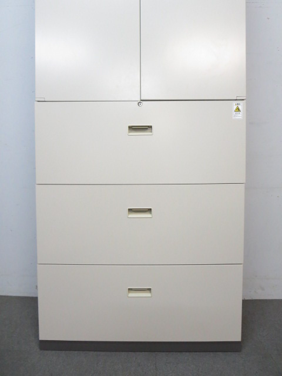 【壁面にスッキリ収納!】■コクヨ製 上下書庫セット(両開き+3段ラテラル)■【スチールキャビネット】- 川崎店