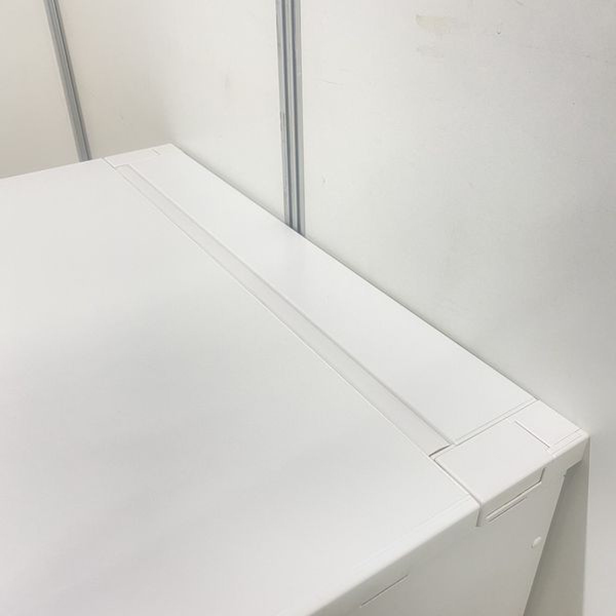 - 机の角がシャープなので、隣り合うデスクがフラットにつながります。すっきりとしたデザインです。