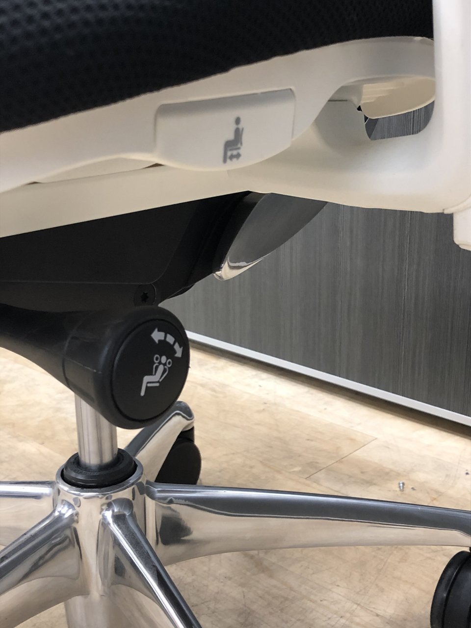 - 座面右下のレバーをスライドさせる「クイックスライドオペレーション」で、リクライニング反力を調整できます。強さの状態が視覚的にわかるため、直感的に操作がおこなえます。
