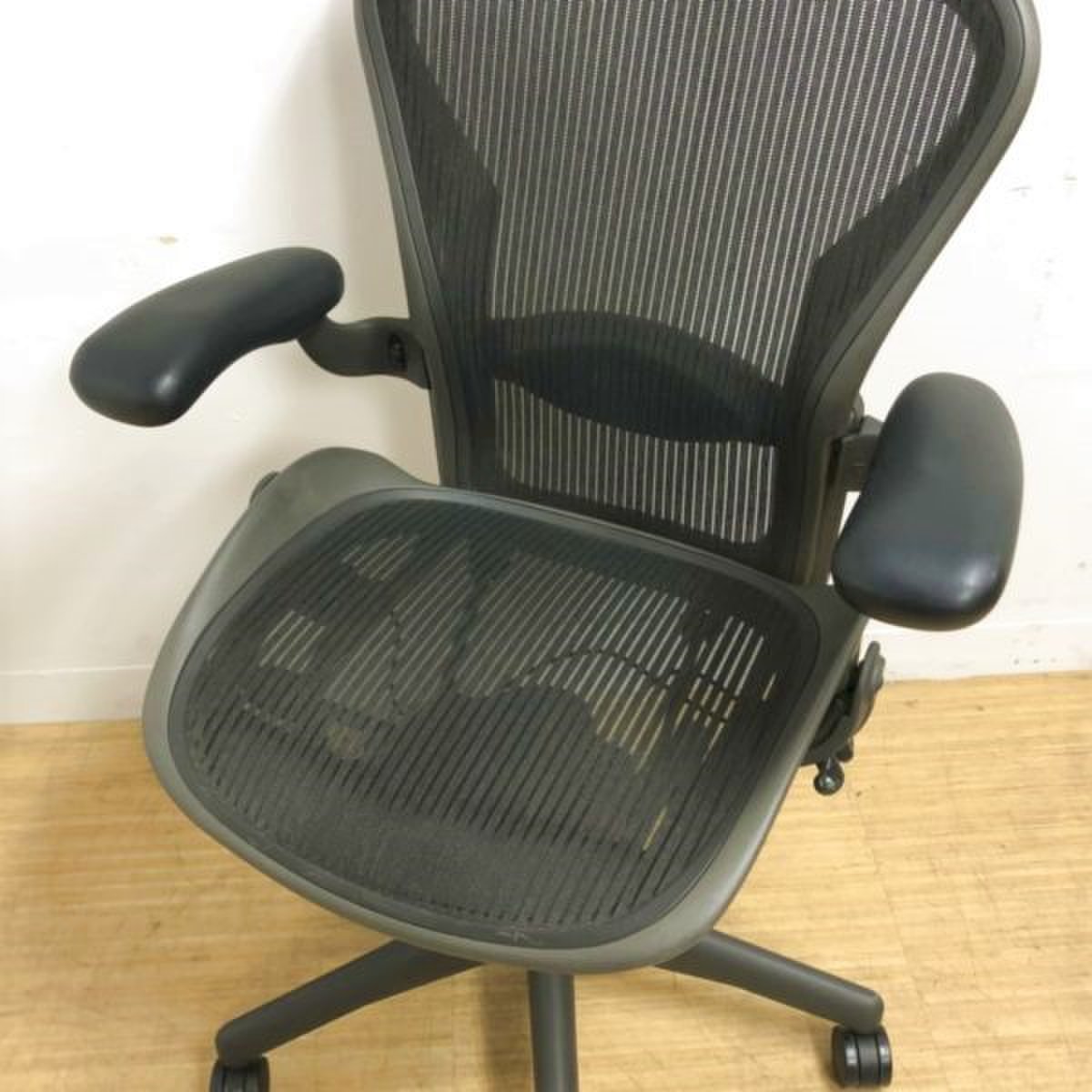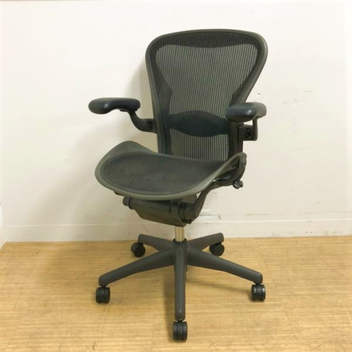 【★状態イマイチのためお安く!】■ハーマンミラー製 アーロンチェア Bサイズ 固定肘 ※キズあり・ランバーサポート無・昇降ガス圧弱めのためお安く!【訳あり特価品】