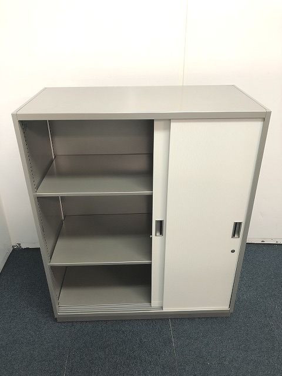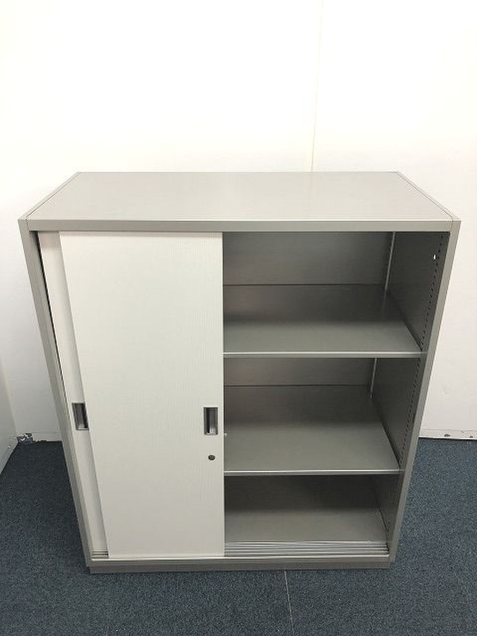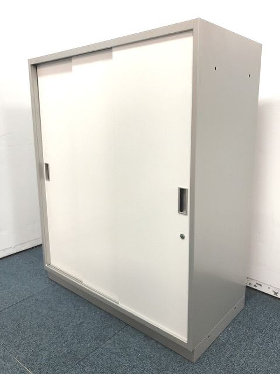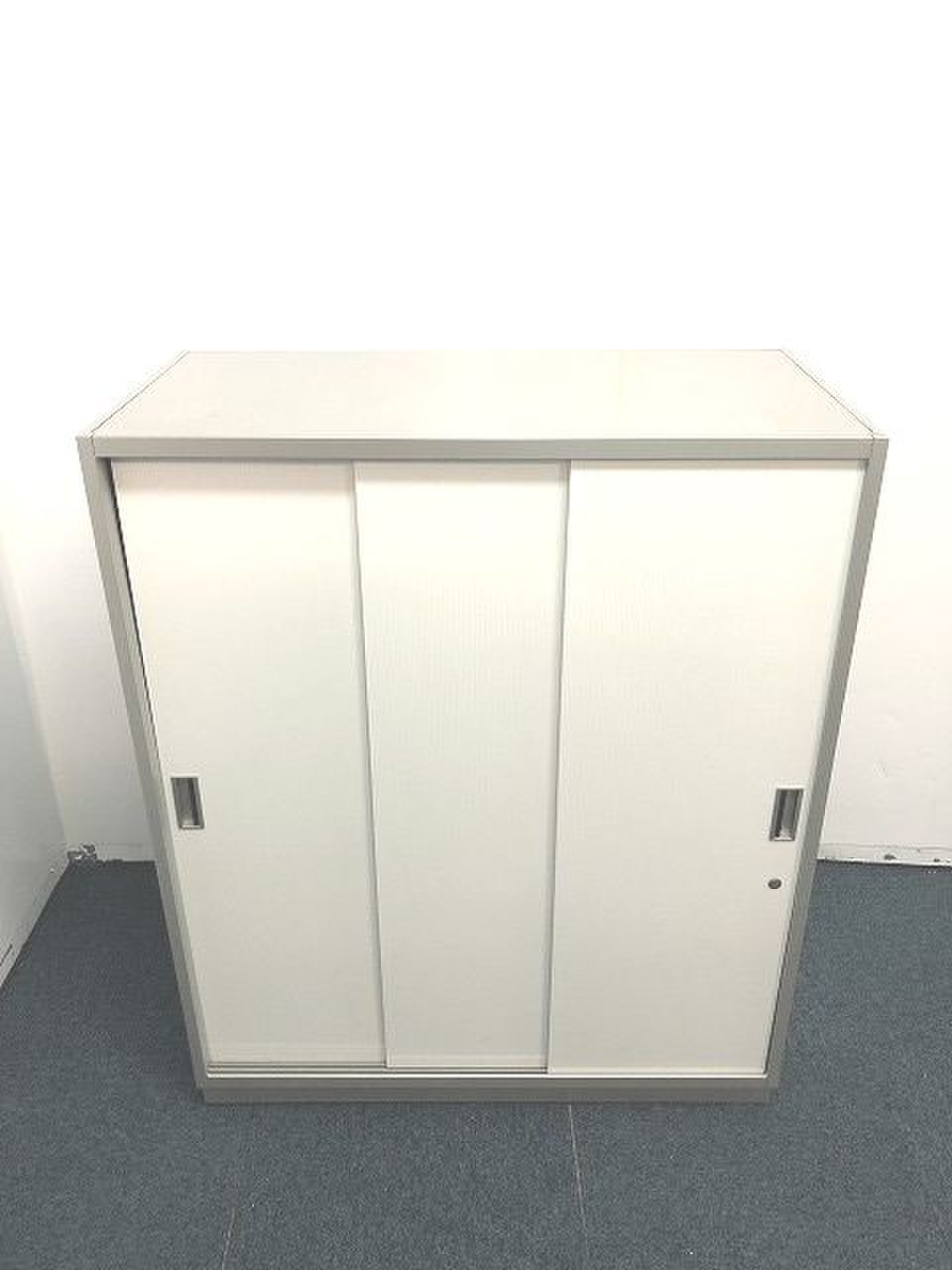 【イトーキ製の開閉スペースを確保した人気のキャビネット!】■3枚引き違いキャビネット ■イトーキ ■シンライン ■幅800mm×奥行き450mm×高さ1100mm 鍵付き書庫 オフィスバスターズ東大阪店