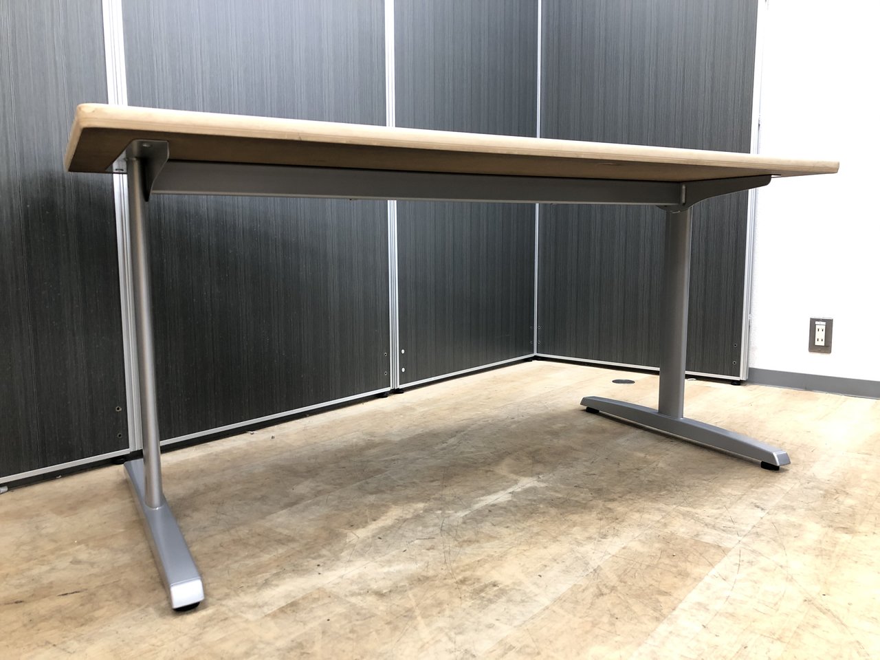 打ち合わせや作業にオススメのミーティングテーブル! ■オカムラ/8177シリーズ/天板カラー:プライズウッドライト 脚カラー:ブラック ミーティングテーブル 会議用 ■W1800×D750㎜