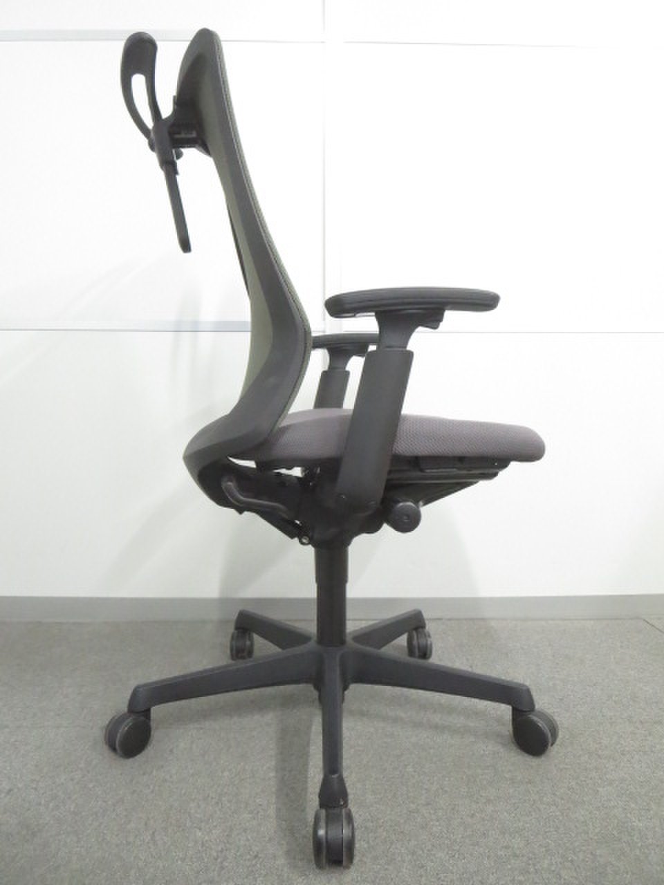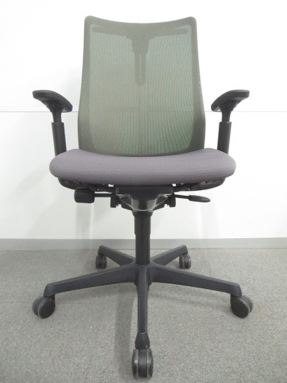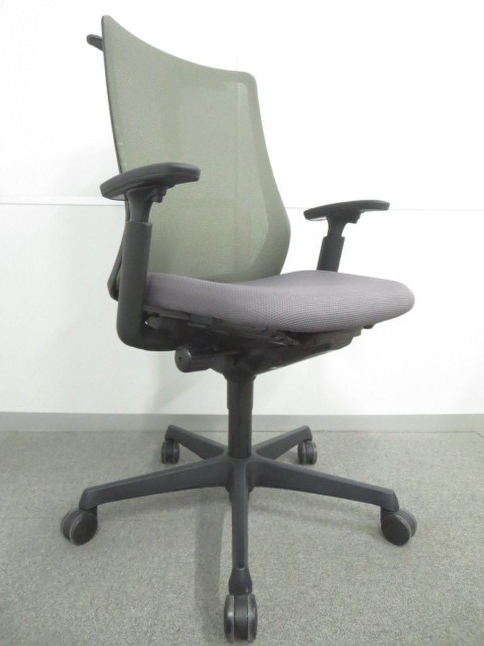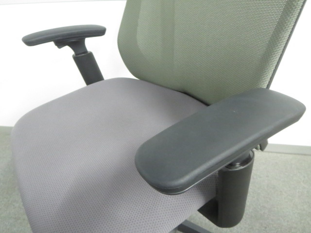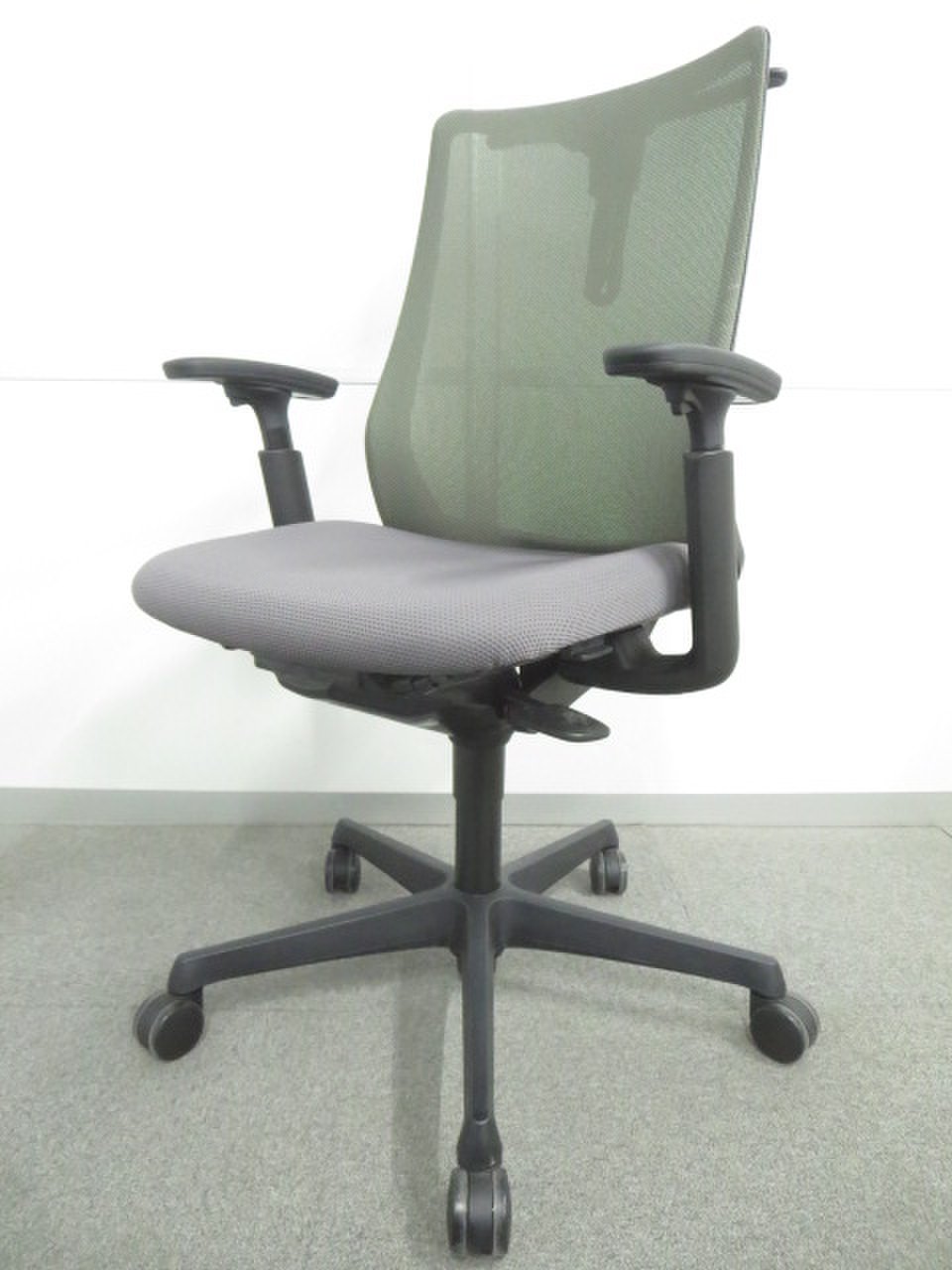 【背中を立体的に包み込む!】■オカムラ製 フルーエントチェア ミディアムグレー アジャストアーム ハンガー付- 川崎店