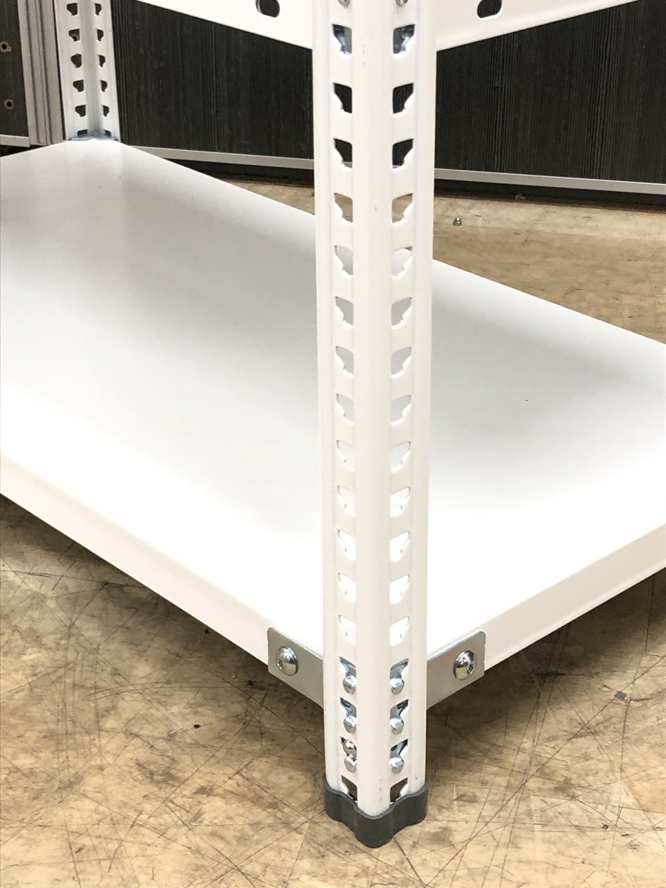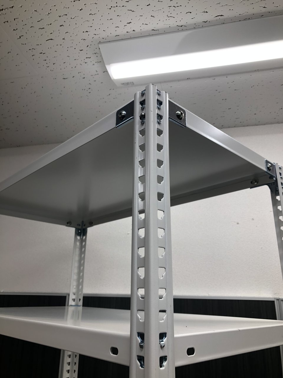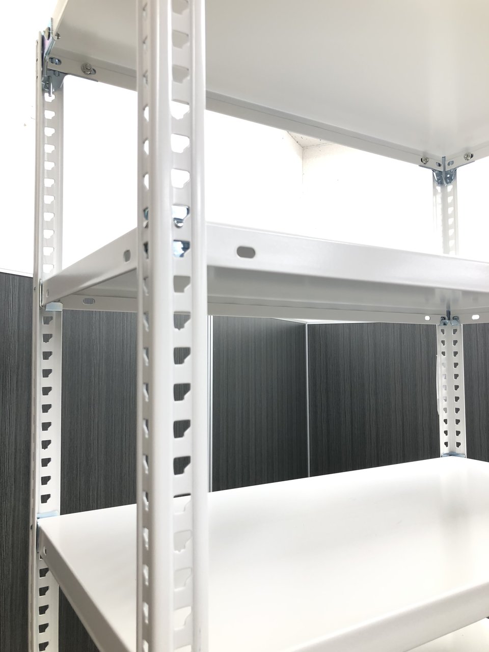 25mmピッチで棚板を簡単に移動できる、セミノンボルトタイプの軽量ラックです。