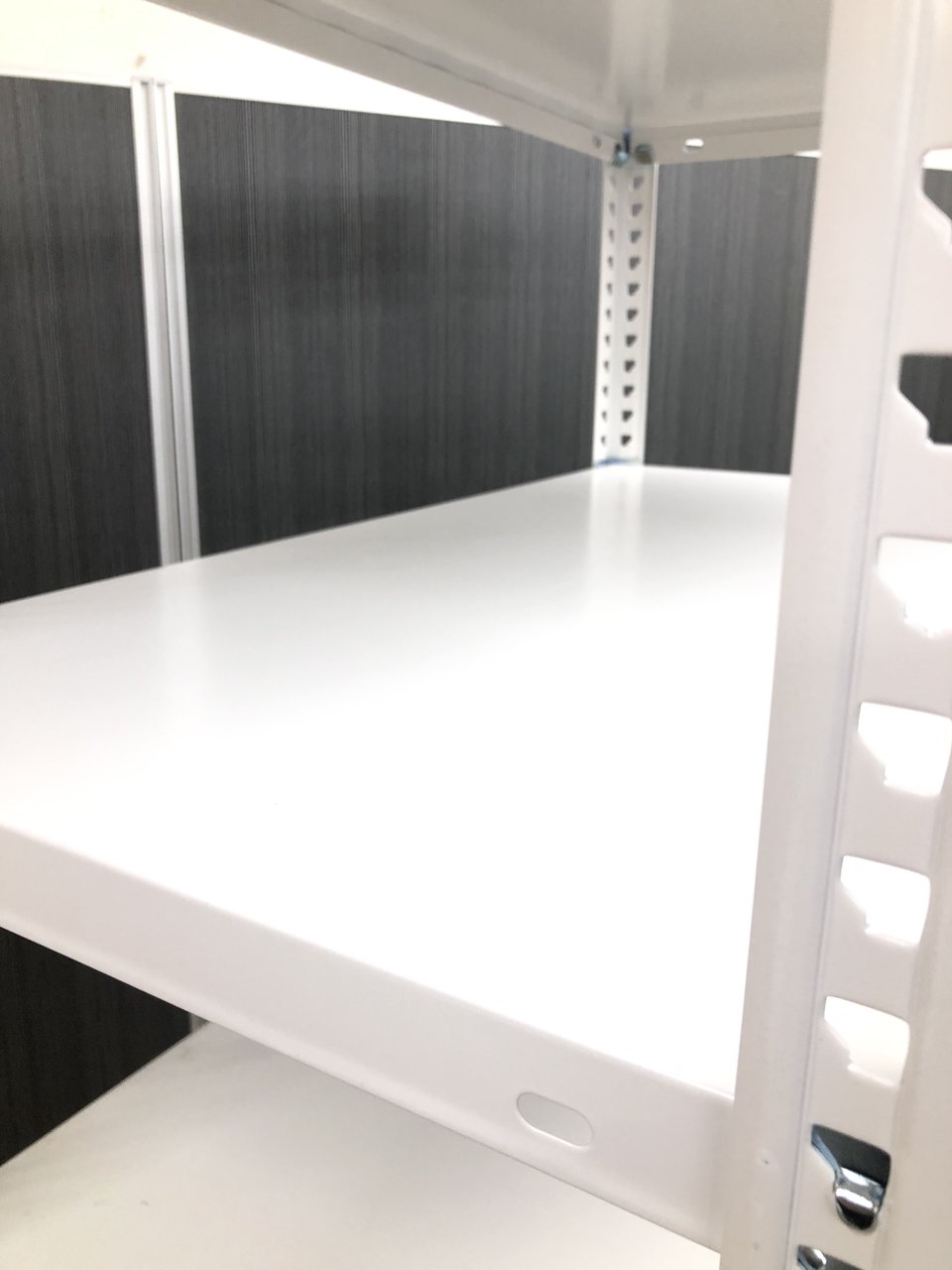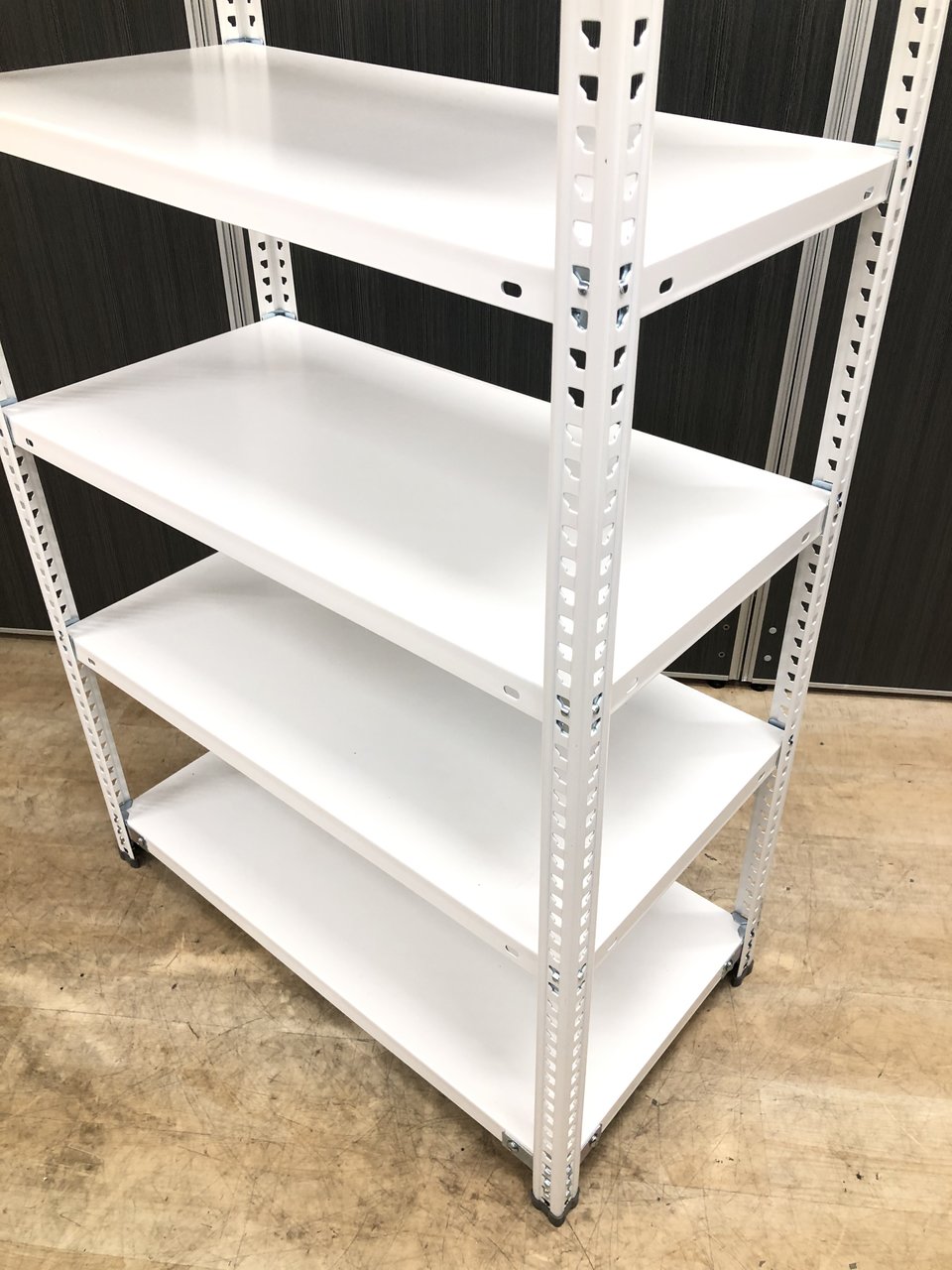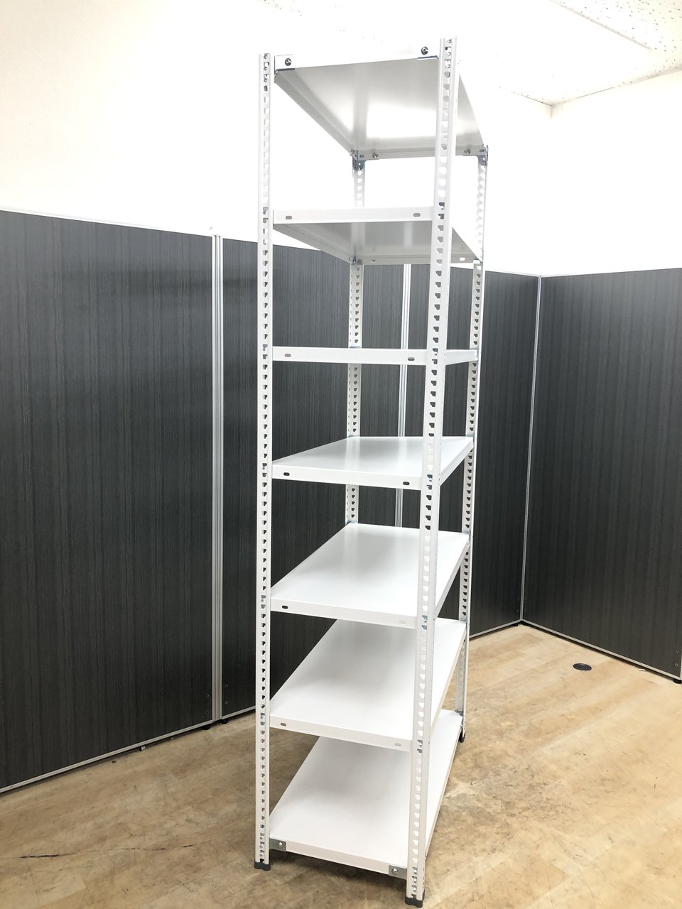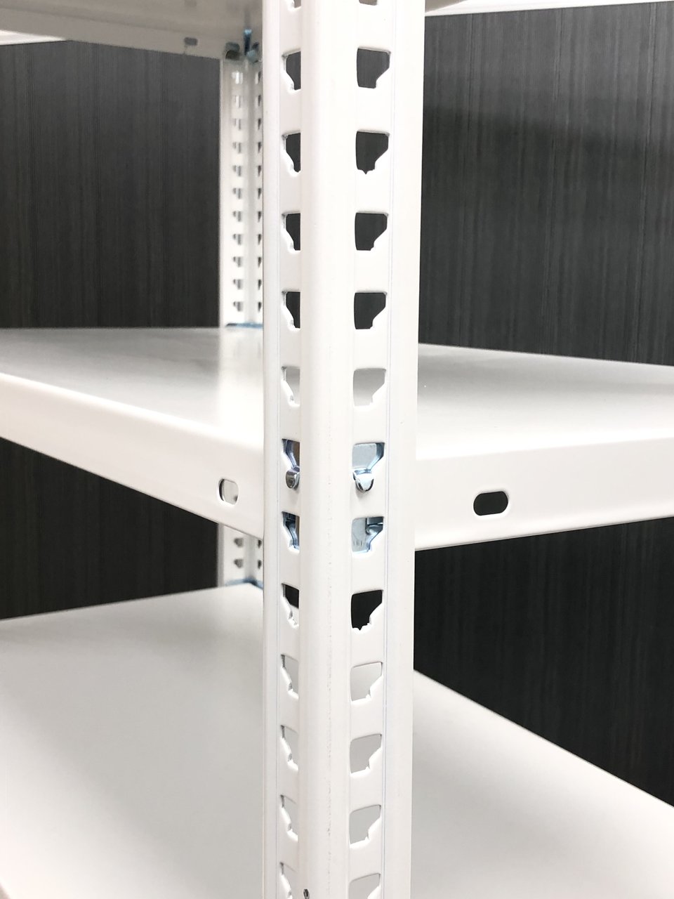 25mmピッチで棚板を簡単に移動できる、セミノンボルトタイプの軽量ラックです。