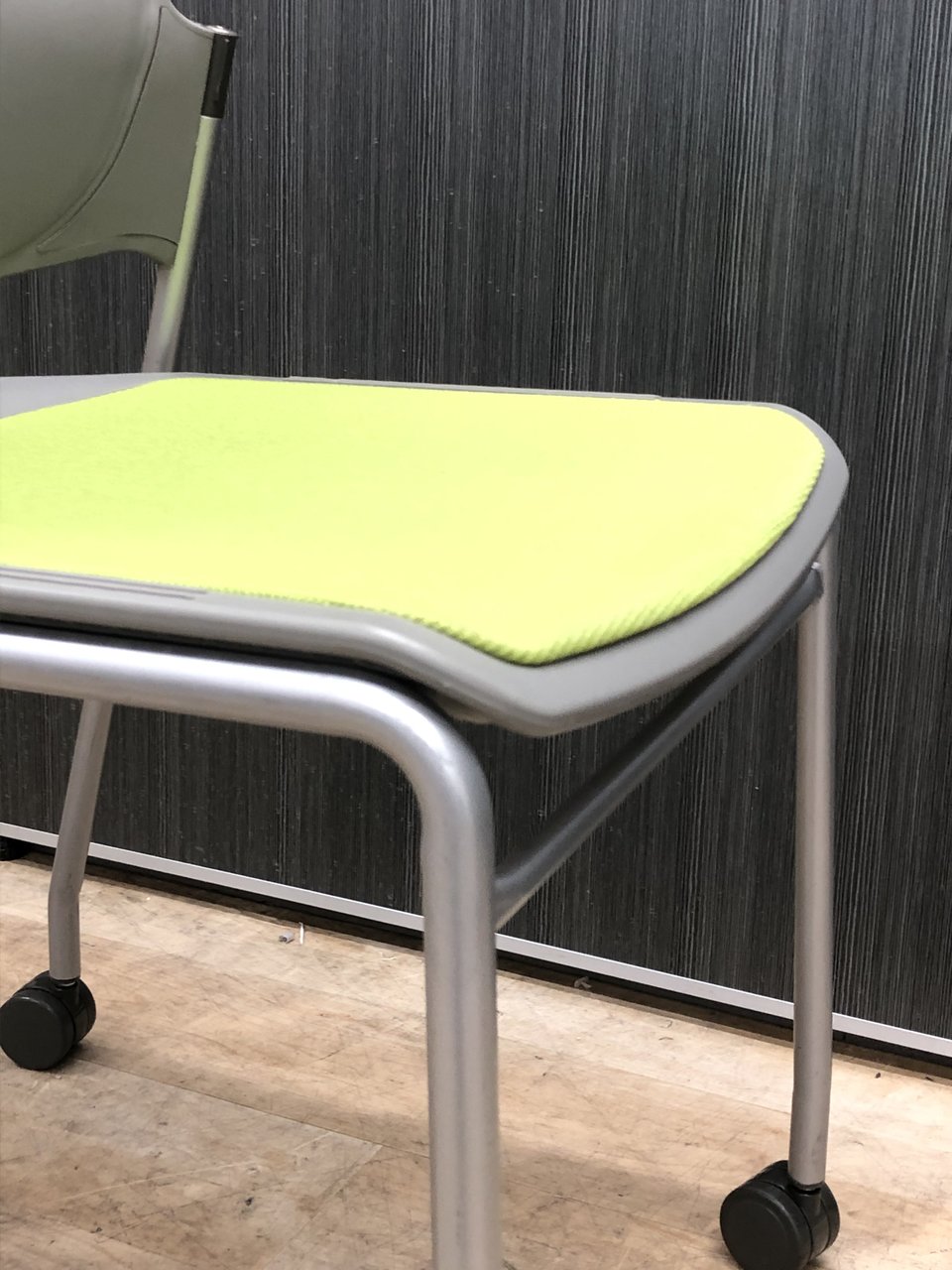 【8脚入荷】明るい緑のクッションがよし!スタッキングチェア【中古】【オフィス家具】【東京】【大阪】【愛知】【岐阜】- 岐阜店