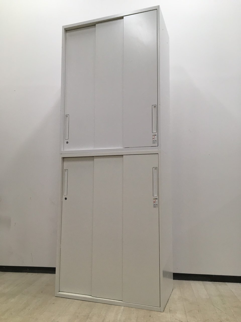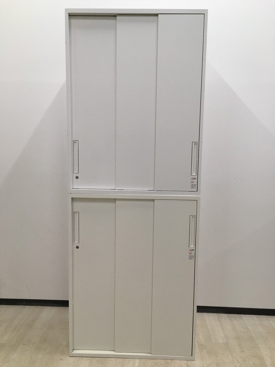 横幅800のスリムタイプ!3枚引違で導線確保可能です!コクヨ/エディア/ホワイト/引違書庫セット- つくば店