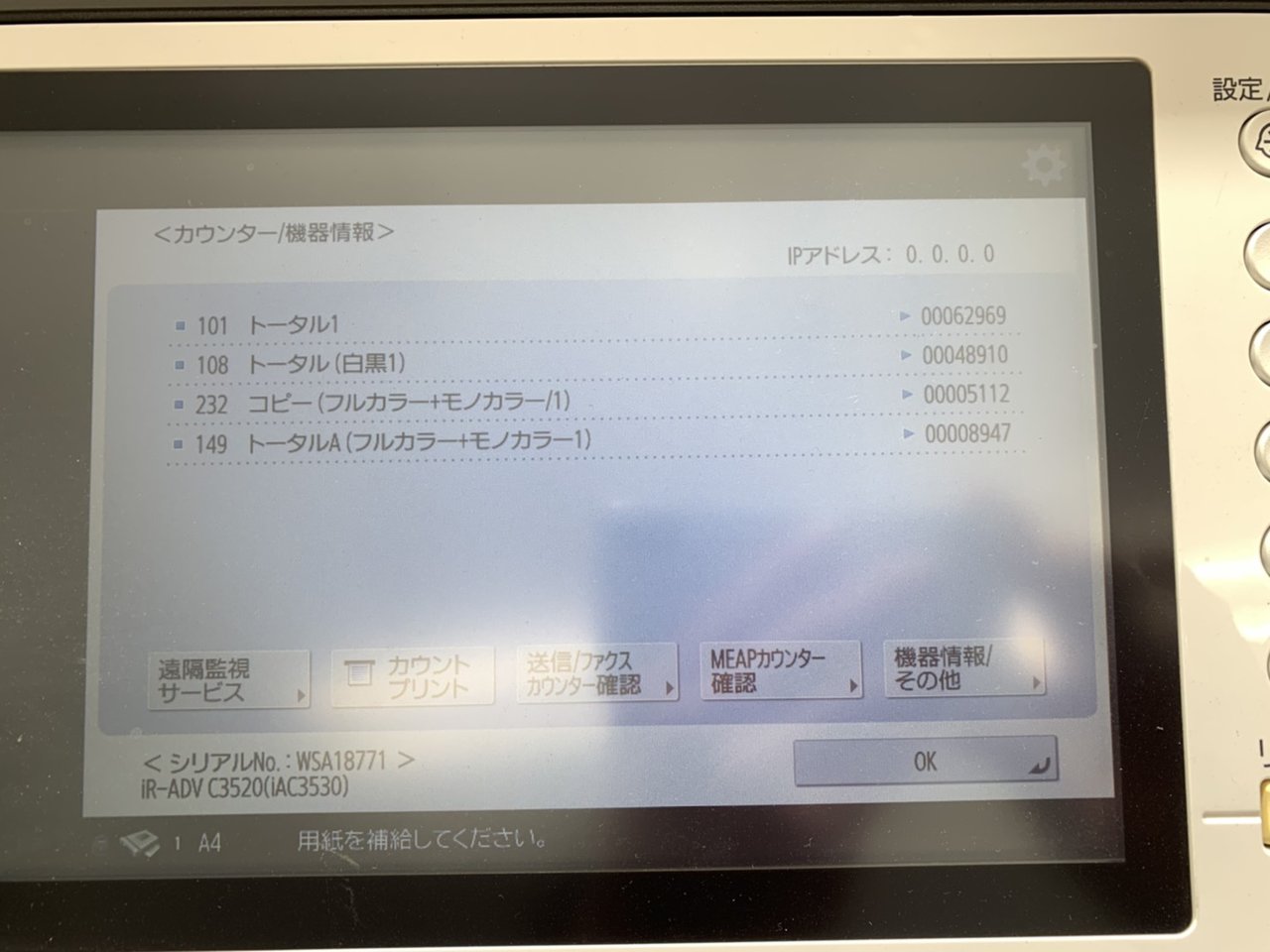 ※出荷時にメンテナンスを行う都合上、納品時にはカウンター枚数は微増します。