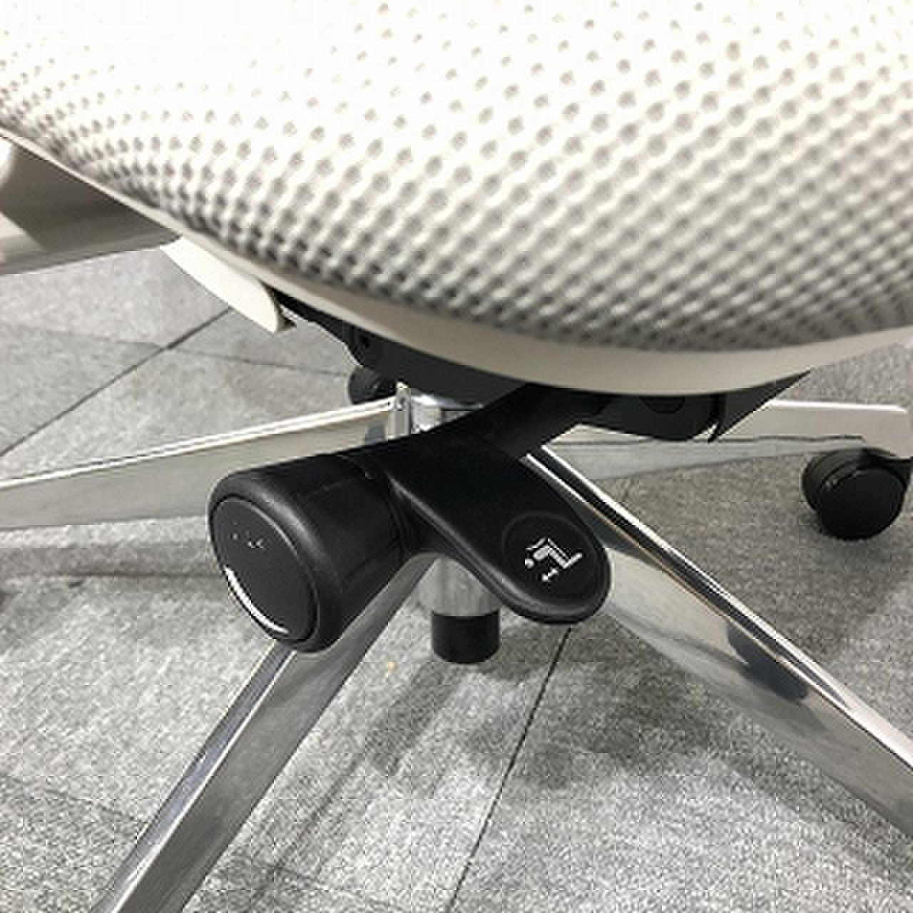- 座面右下のダイヤル操作で、リクライニングの強弱調整が行えます。これまでのダイヤル式よりも、少ない回転数で、最弱?最強の調整が可能です。