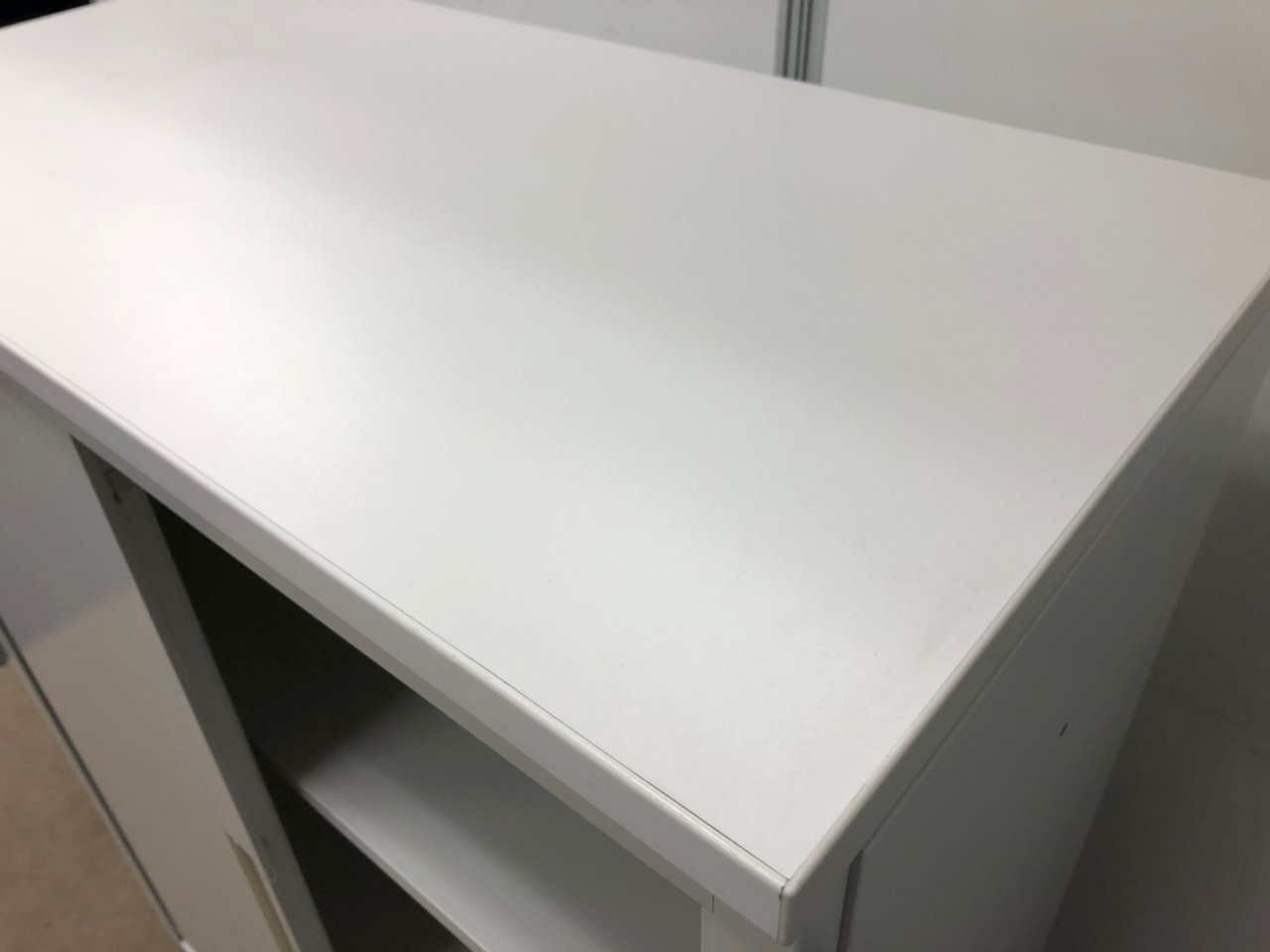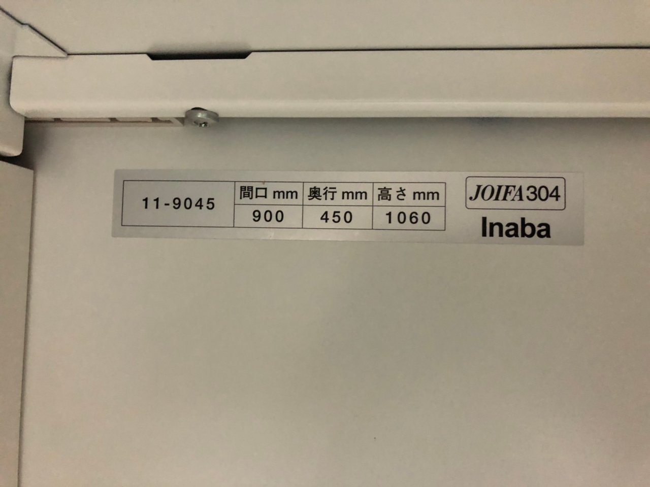 【人気の引き違い戸タイプ!取っ手が大きく使い勝手のよい定番キャビネット!】■イナバ(Inaba)製 TFシリーズ 引き違い書庫 ローキャビネット W900×D450㎜ ■ホワイト /ベース:グレー ■シリンダー錠 ※日焼けあり
