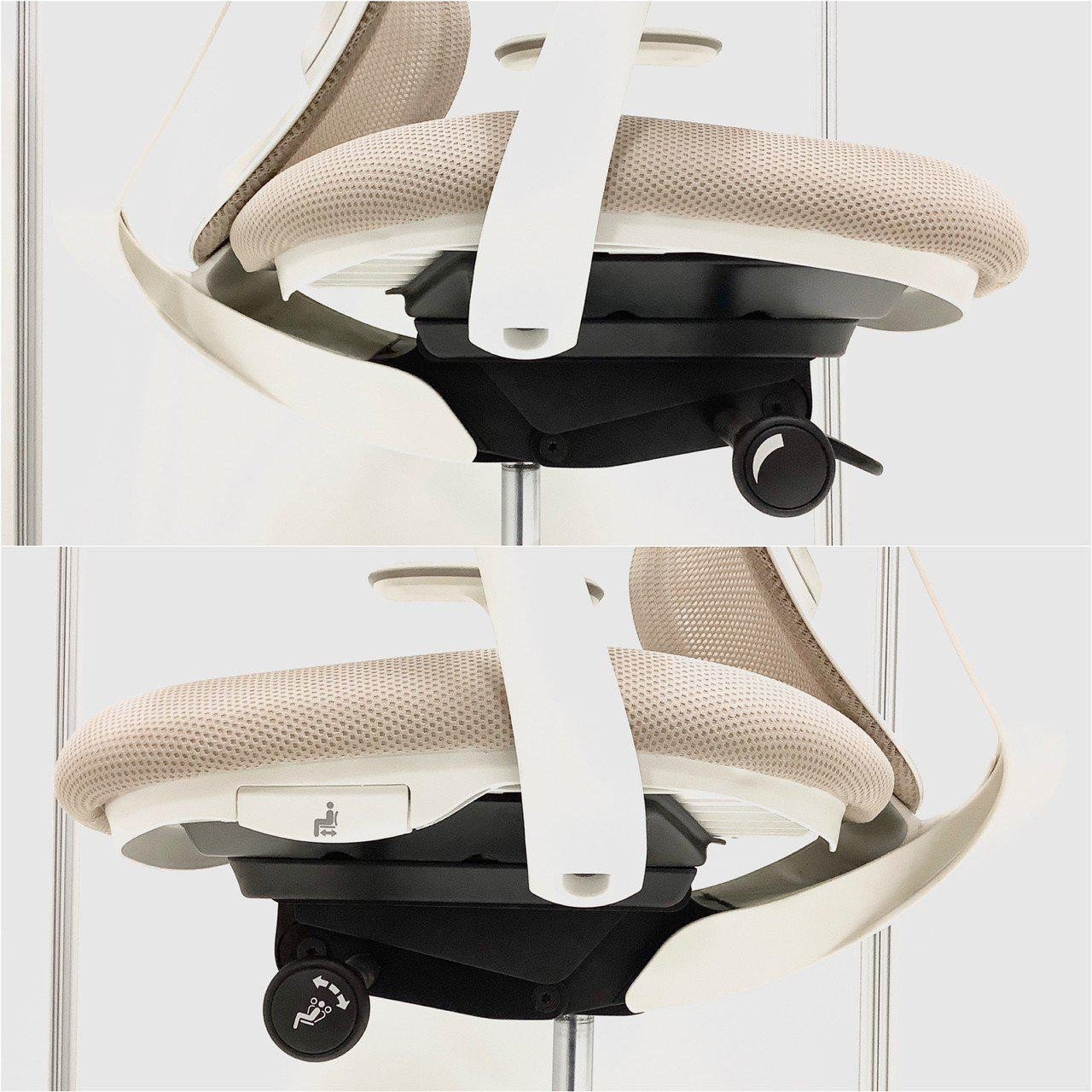 - 座面右下のダイヤル操作で、リクライニングの強弱調整が行えます。これまでのダイヤル式よりも、少ない回転数で、最弱?最強の調整が可能です。