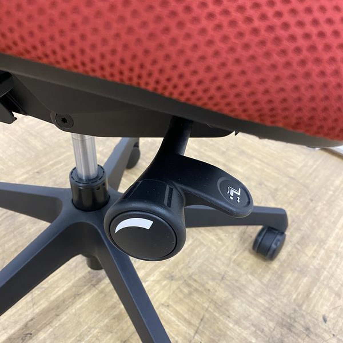 - 座面右下のダイヤル操作で、リクライニングの強弱調整が行えます。これまでのダイヤル式よりも、少ない回転数で、最弱?最強の調整が可能です。