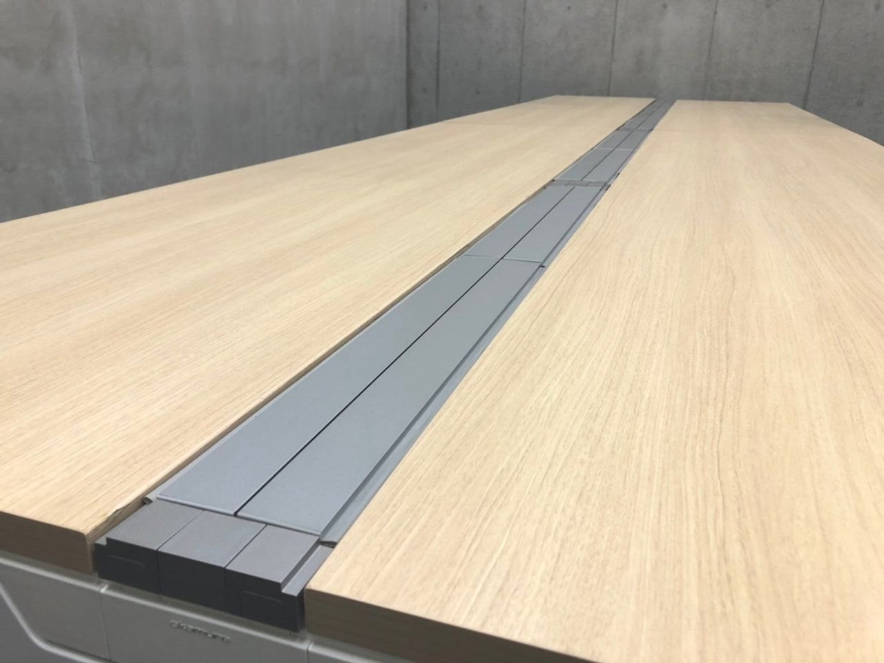 通常のオフィスデスクと同じスペースが取れ、脚が両端と中間脚しかないので邪魔に