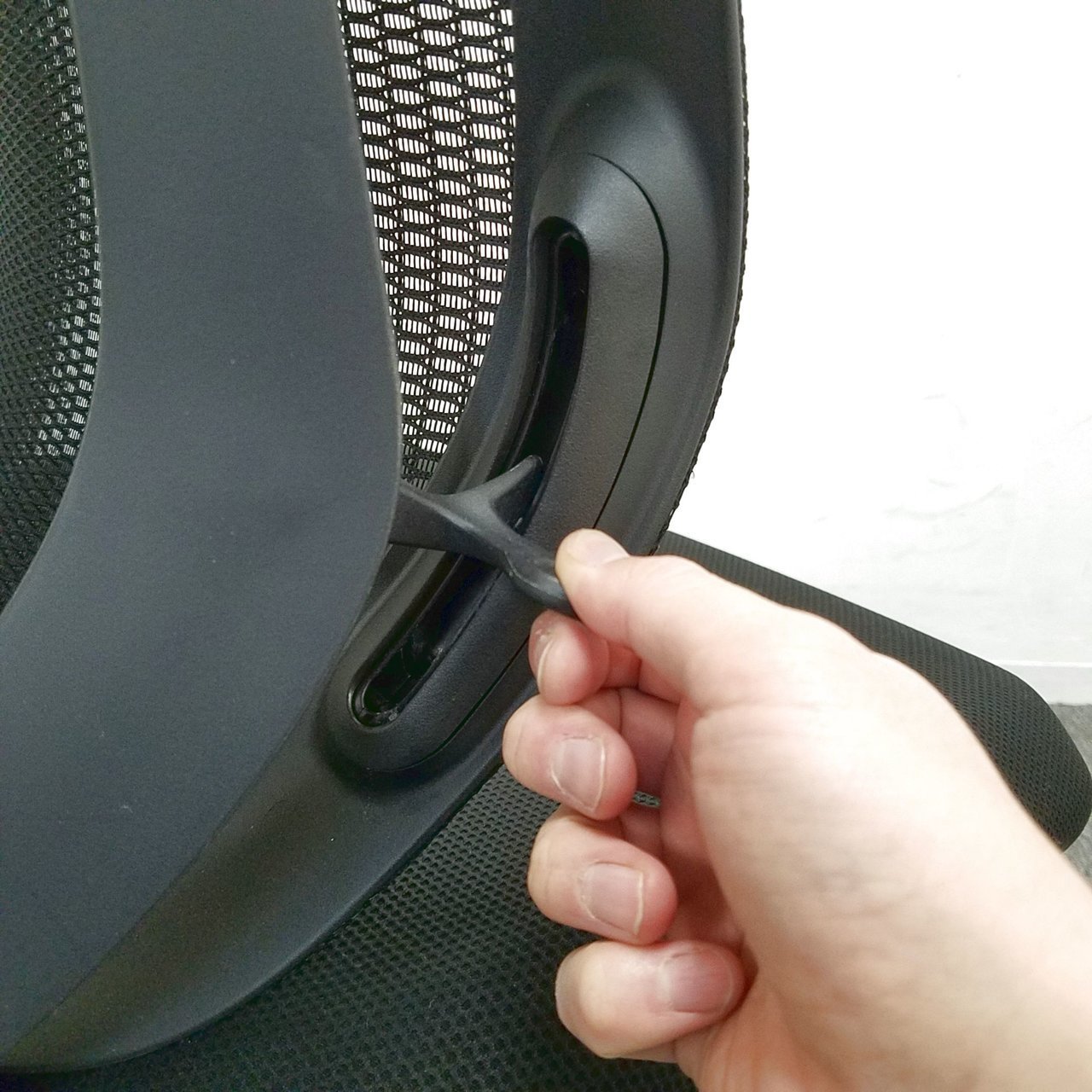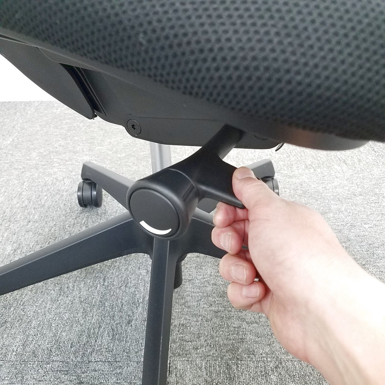 - 座面右下のダイヤル操作で、リクライニングの強弱調整が行えます。これまでのダイヤル式よりも、少ない回転数で、最弱?最強の調整が可能です。