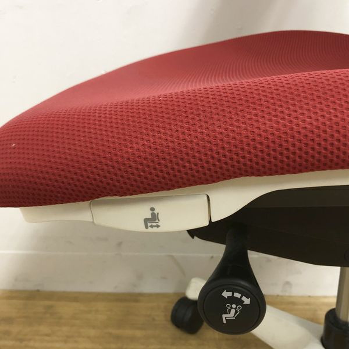 - 座面右下のダイヤル操作で、リクライニングの強弱調整が行えます。これまでのダイヤル式よりも、少ない回転数で、最弱?最強の調整が可能です。