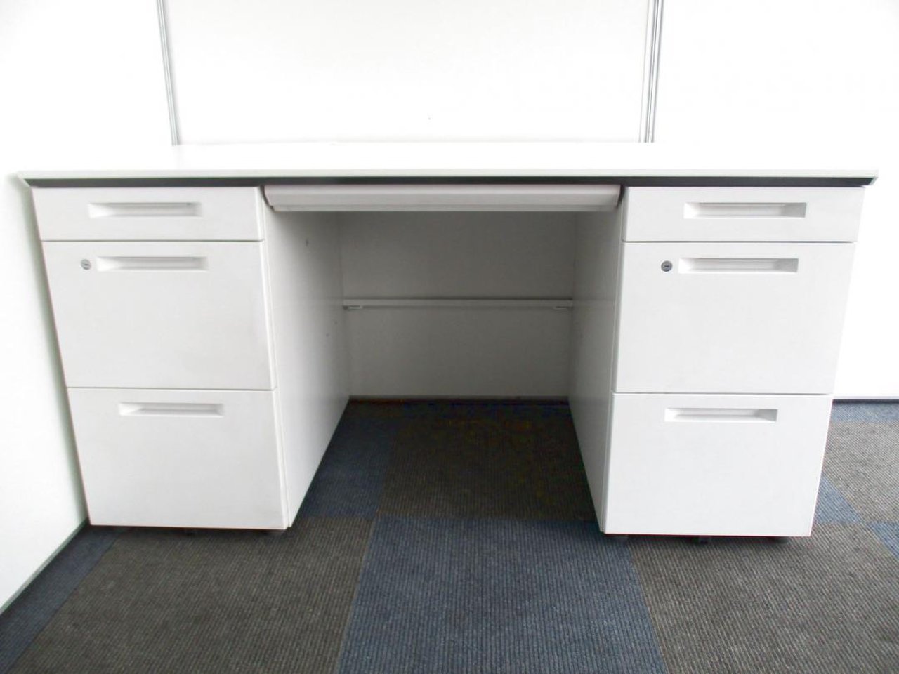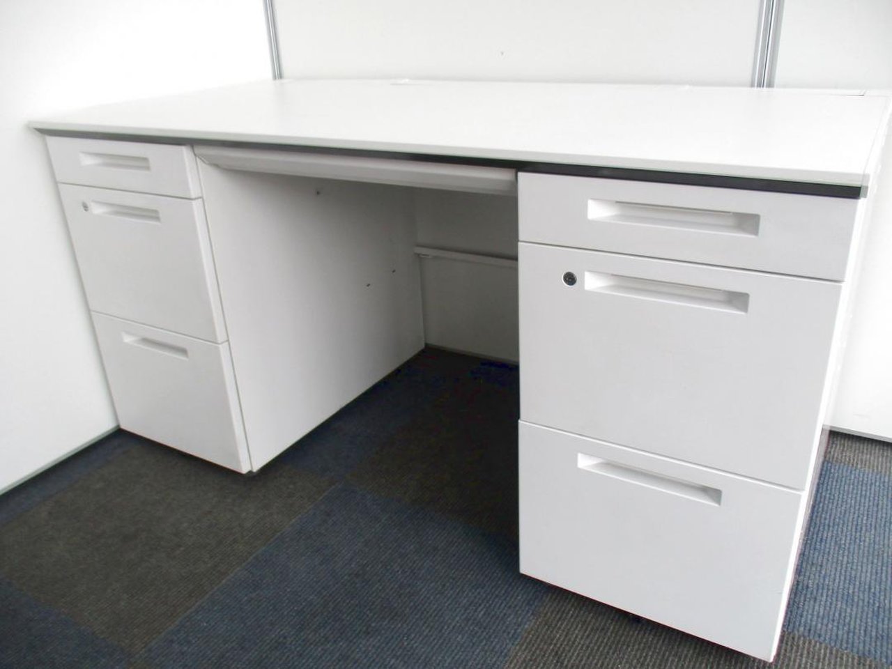 【在庫セール品・1台限定】【T11】■コクヨ(KOKUYO)製 アイエス(iS)シリーズ 両袖デスク W1400mm ■シリンダー錠 ■ホワイト【幅広いワークスペースで上長席にもオススメ! 収納スペース充実! 机上をスッキリ整理!】