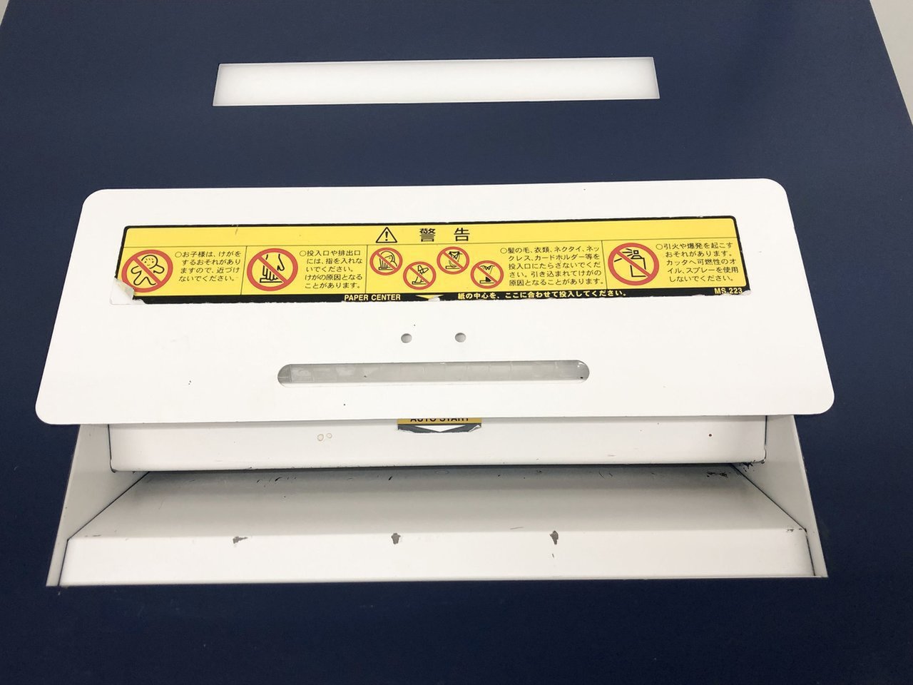 細断時には、安全上投入口を必要最小限の広さにとどめ、紙詰まりの際には、