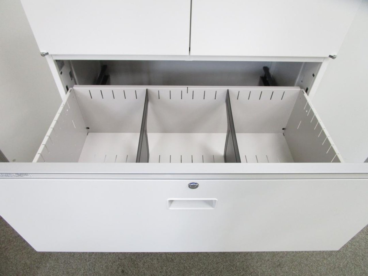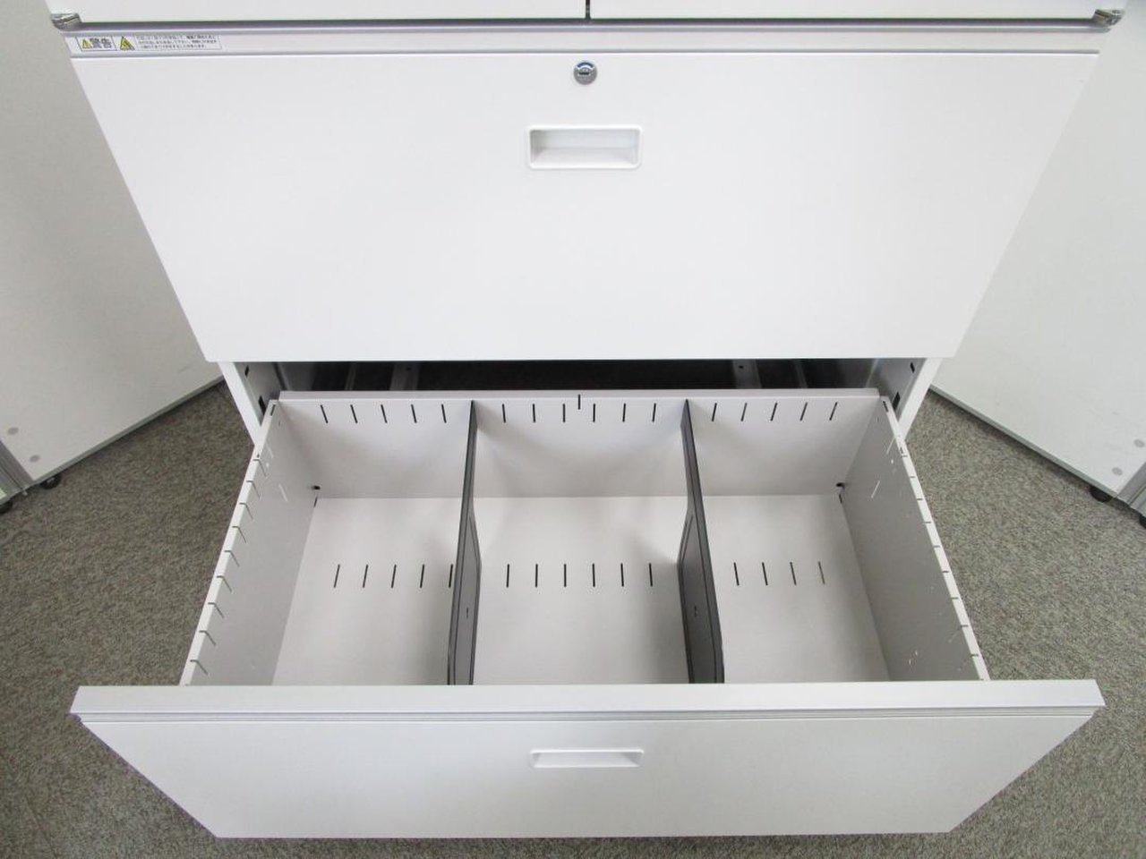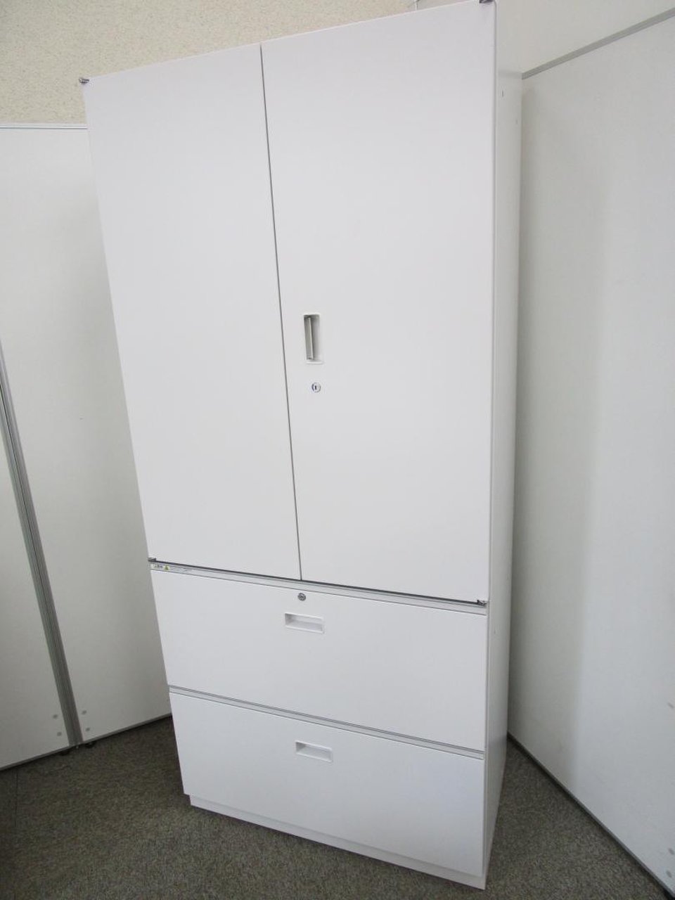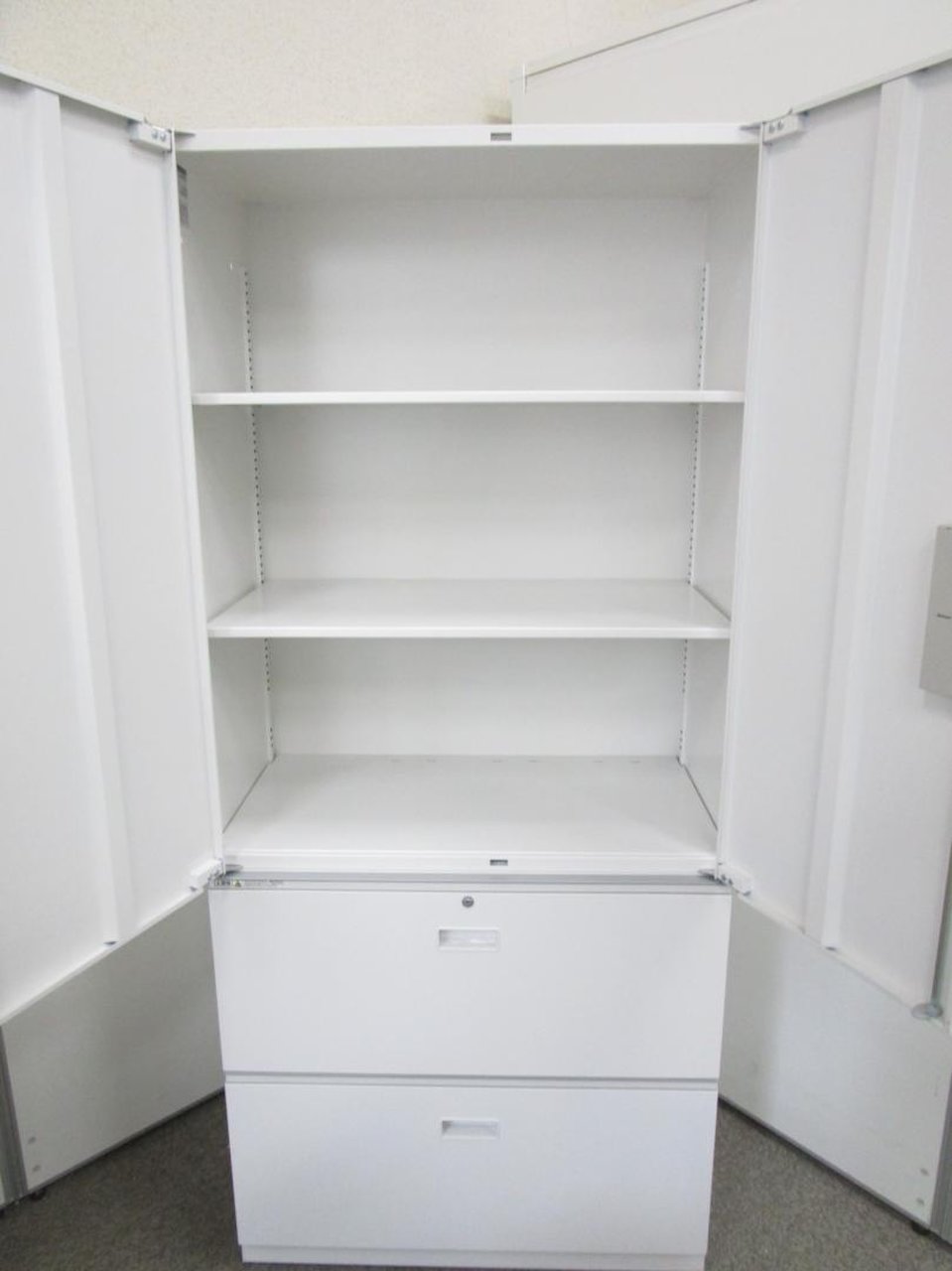 - 一部不具合ありそ引出の開閉不可、施錠不可、棚板無しといったの書庫の本来の効用を果たすための機能以外の一部が使用不可(例、扉、引出の開閉がしづらいなどがある。 )