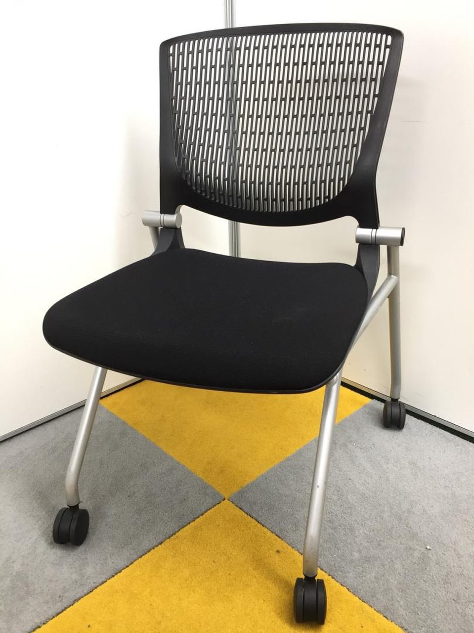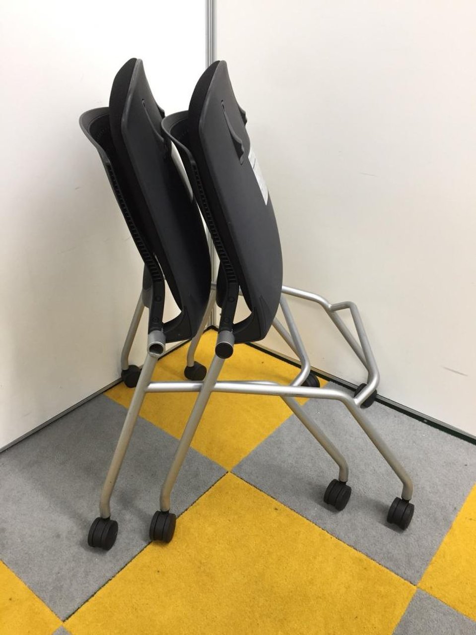【落ち着きのあるブラック!】【会議室や休憩室で便利なネスティングタイプ!】ミーティングチェア- 品川・三田店