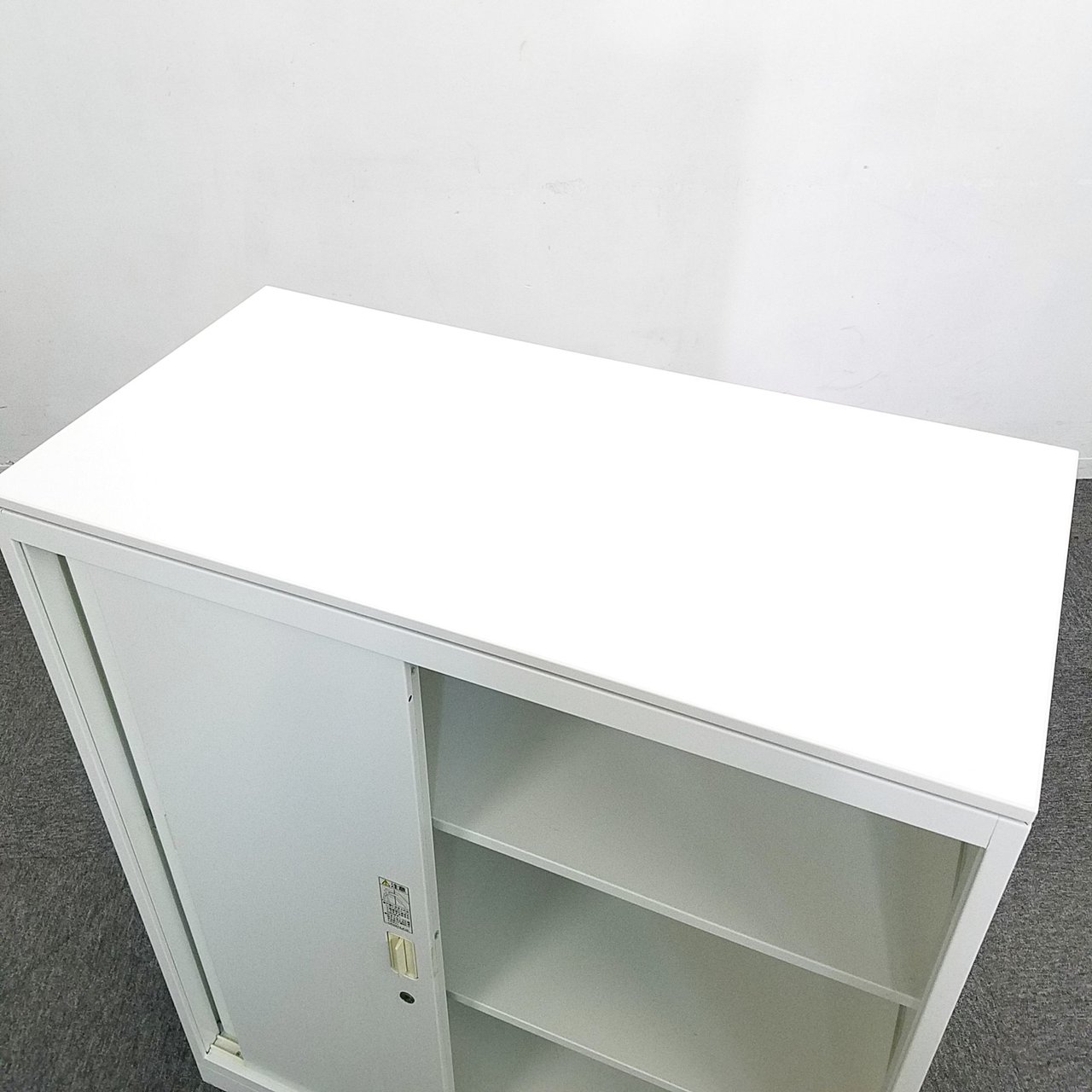 2枚引き戸書庫 オカムラ レクトライン 鍵付き シリンダー錠 ホワイト 天板無し スライド式の扉のため導線を邪魔しません