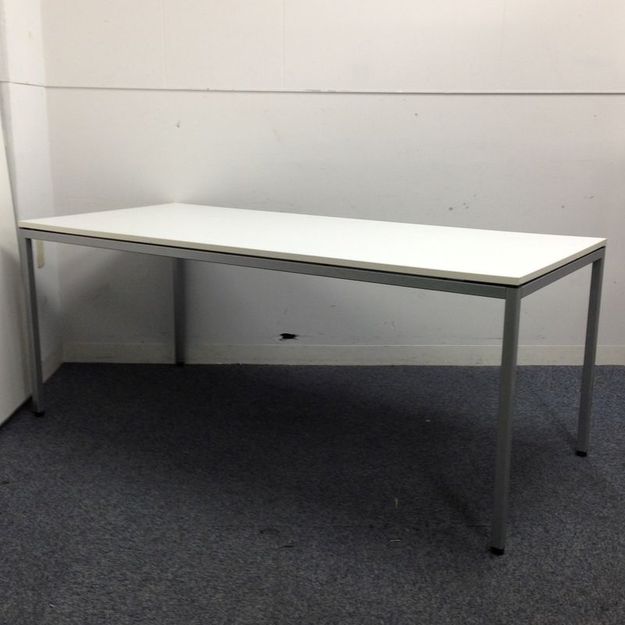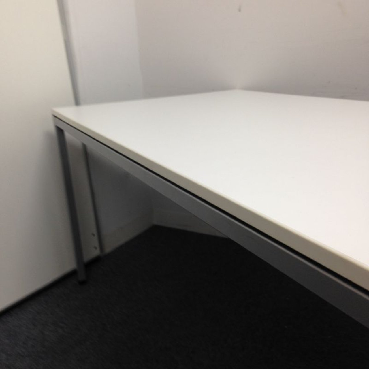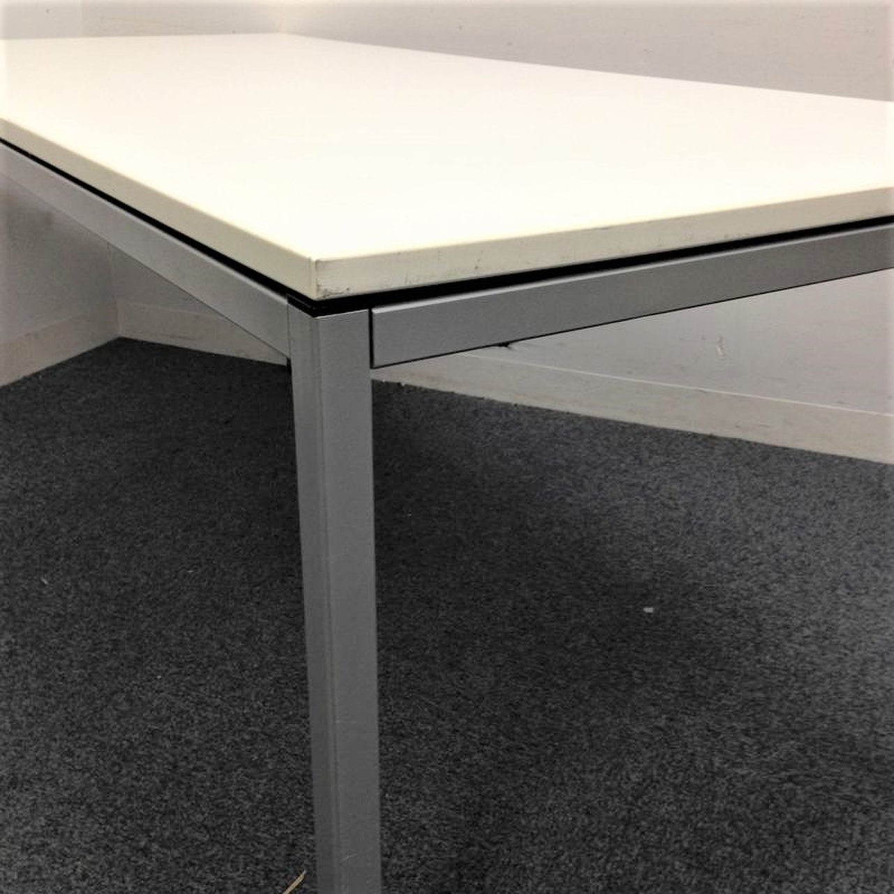 【シンプル4本脚テーブル】オカムラ製 トレッセ(tresse) ホワイト色・シルバー脚■6名サイズ ★- 埼玉本店