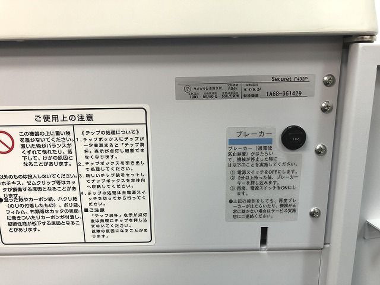 シュレッダー 石澤製作所 背キュレット F402P コスト重視 おすすめ レア クロスカットシュレッダー- なんば日本橋店