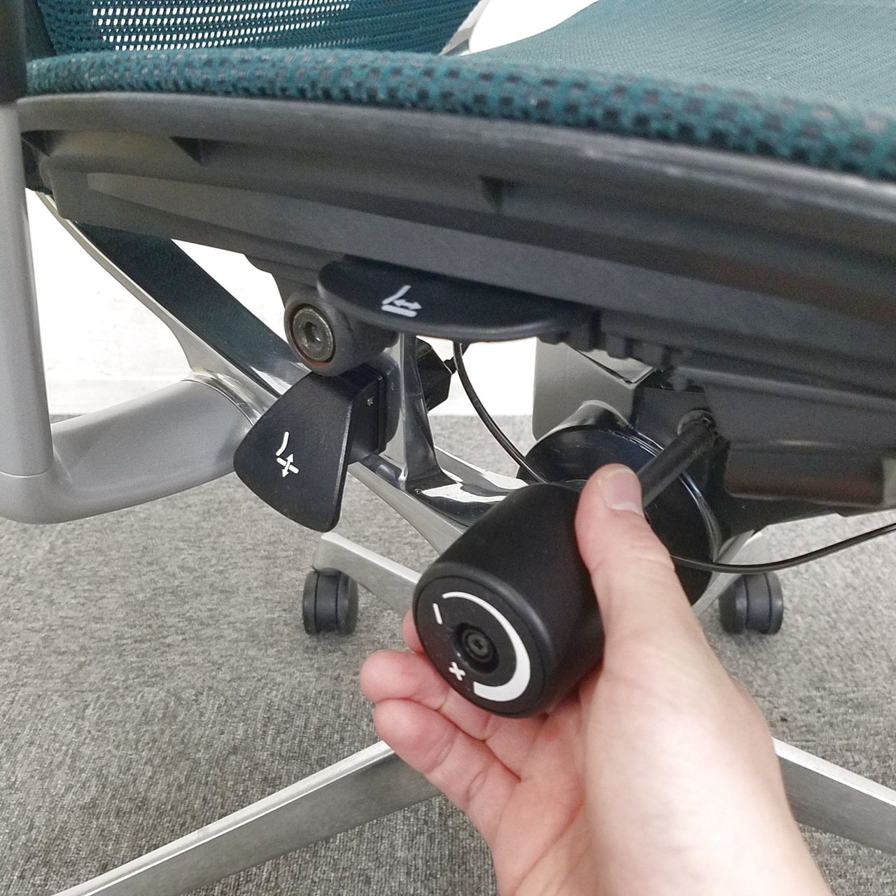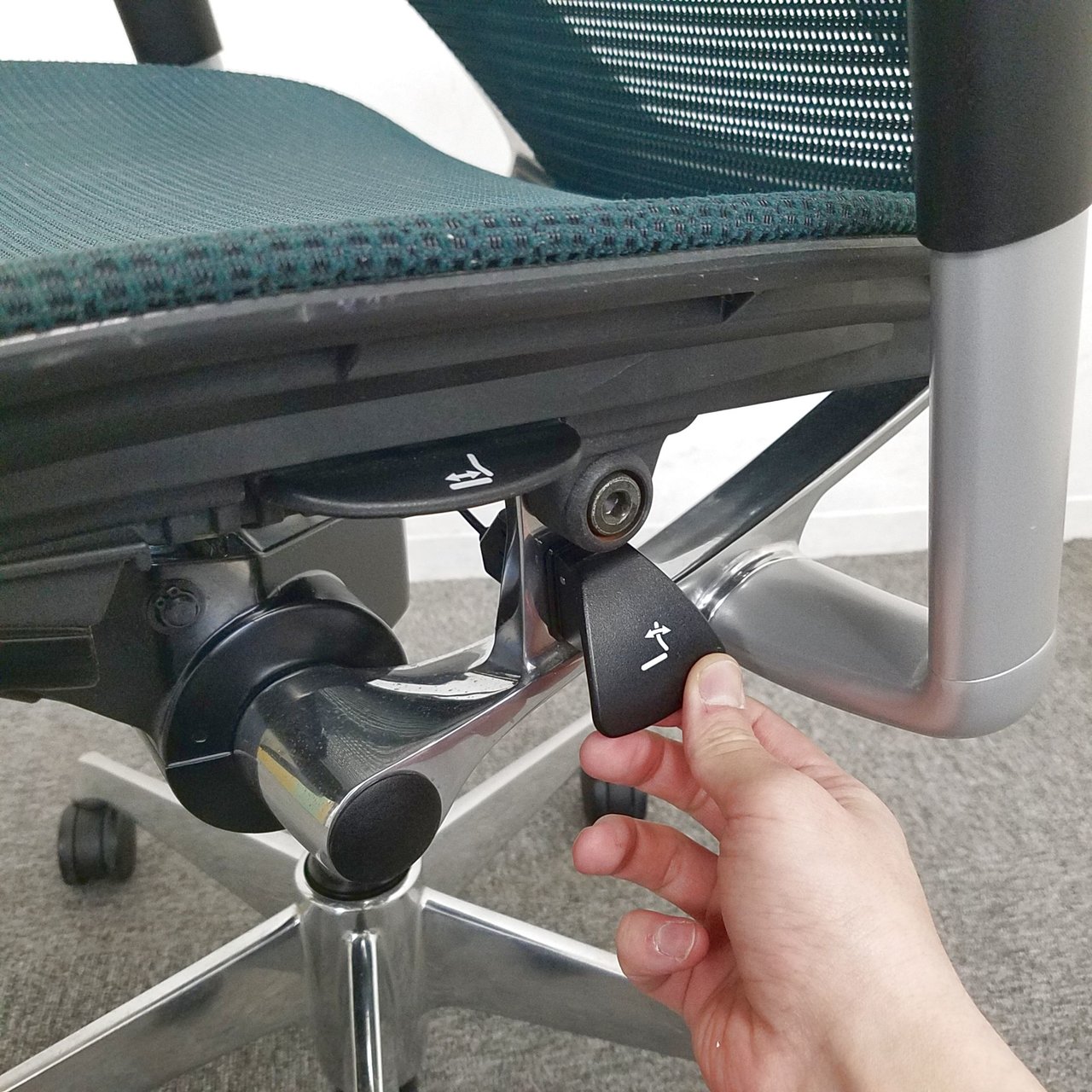 - 座面の右下にあるレバーの操作により座面位置を上下に100mm分調整することが可能です。