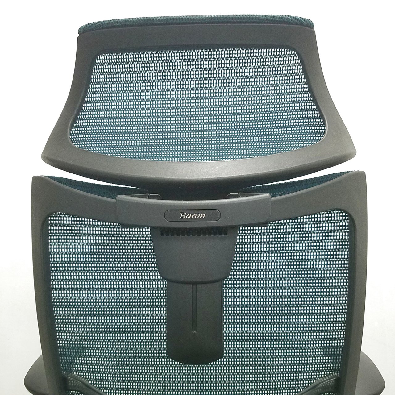 発売当時、既に人気を博していたオカムラの高級チェア、コンテッサから手元で座高調整ができるスマートオペレーション機能を取り除くなどしてリーズナブルにしたのがバロンです。その際に少しだけコンパクト化されました。そのことが、日本人の体格、日本のオフィス、家庭環境に適し、国内で多くのシェアを獲得する要因の一つになったのではないかと思います。