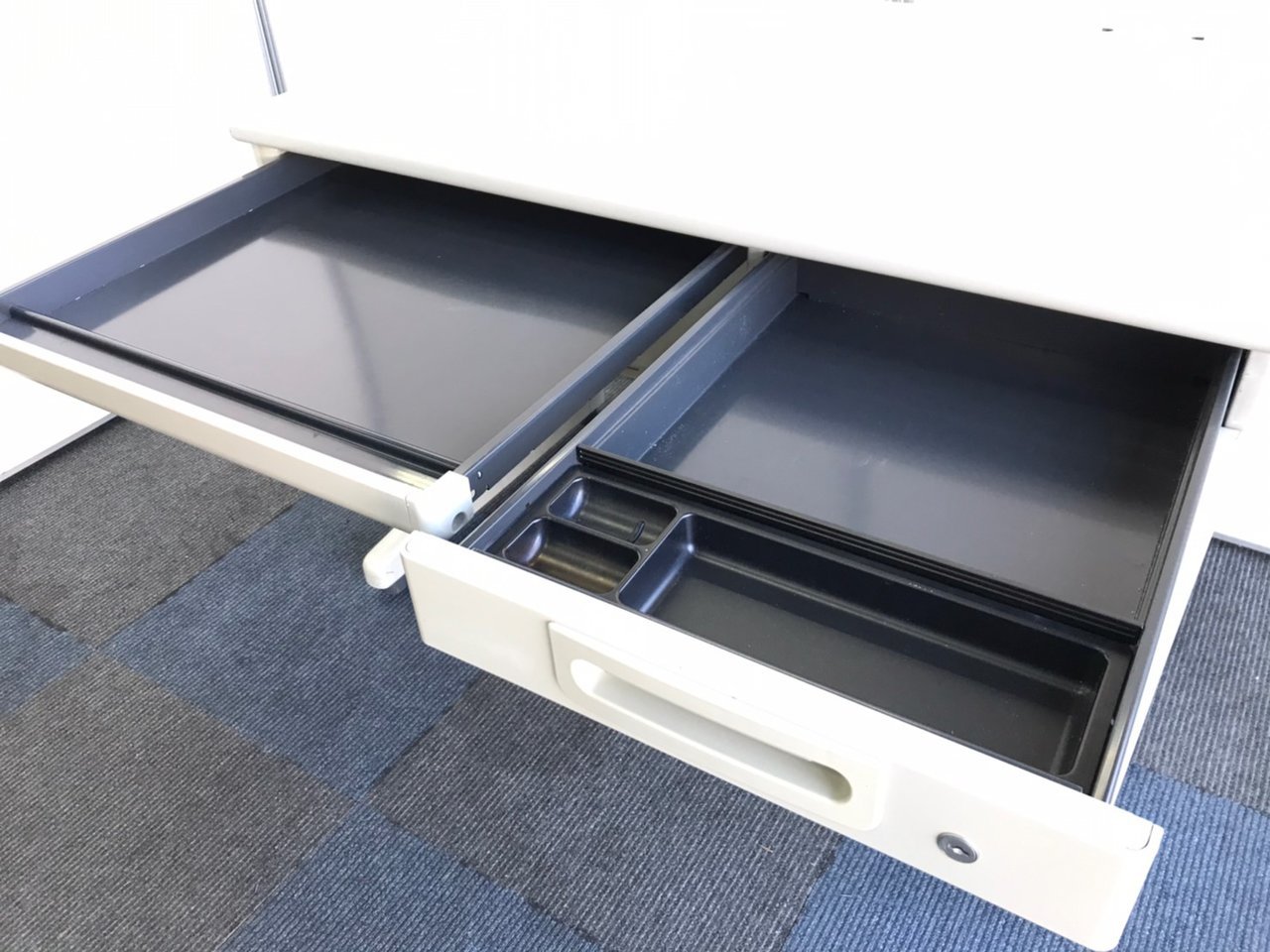 店内にはいろいろなサイズやカラーのデスクやキャビネットを展示しており、お客様にニーズに合った商品をご提供させていただきます。