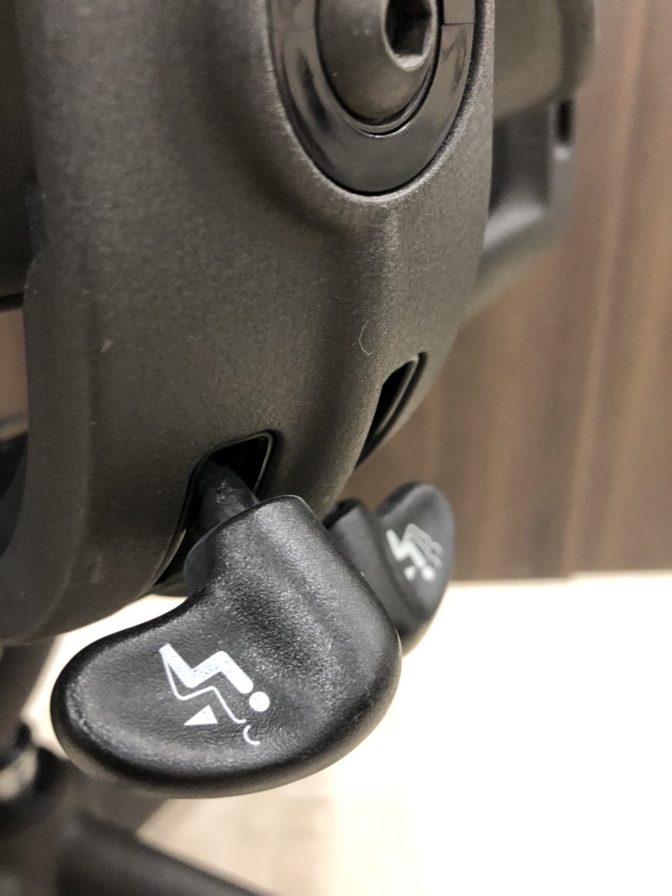 - 背もたれの裏にあるランバーサポート(パッド) の厚さは裏表で調節。上下の移動で、適切な高さ に調節できます。