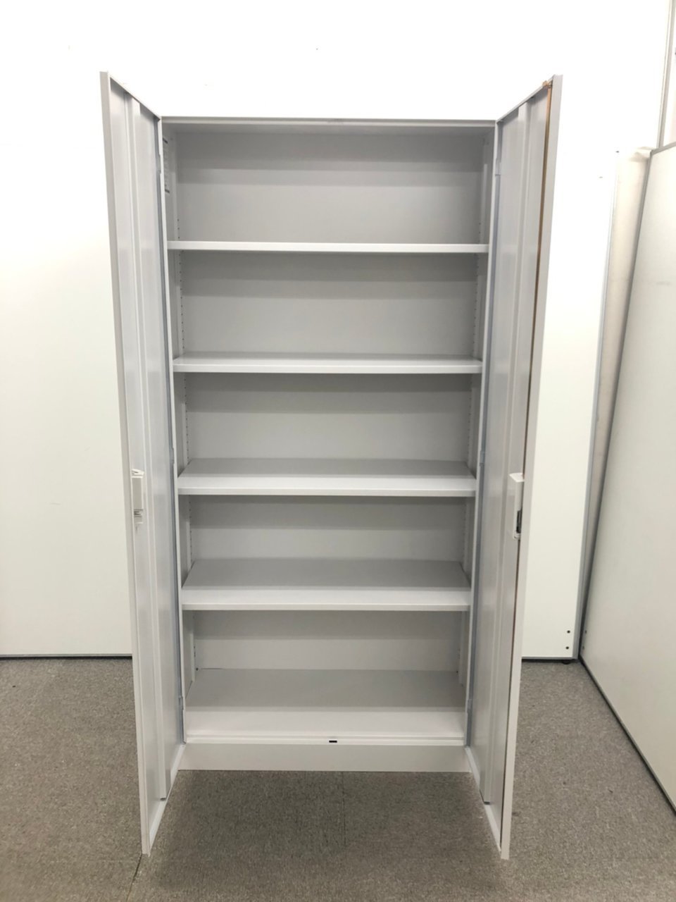 【A4ファイル収納に!】■両開き書庫 ホワイトグレー H1790mmタイプ(旧JIS規格書庫)【スチールキャビネット】- 川崎店