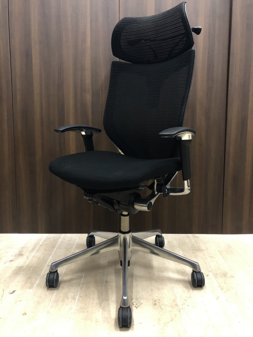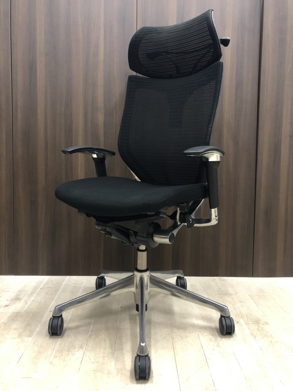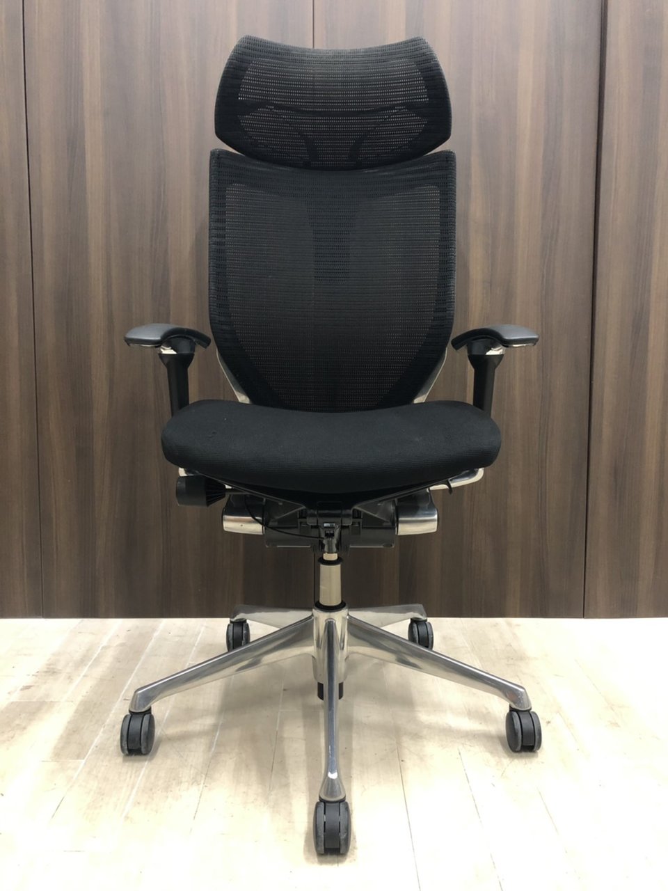 【座面メッシュ】スタンダードメッシュ ブラックフレーム アームレスト付き ヘッド付きオススメ(おすすめ) 大人気 ・Okamura/オカムラ ・Baron/バロン ※横浜本店撮影画像※