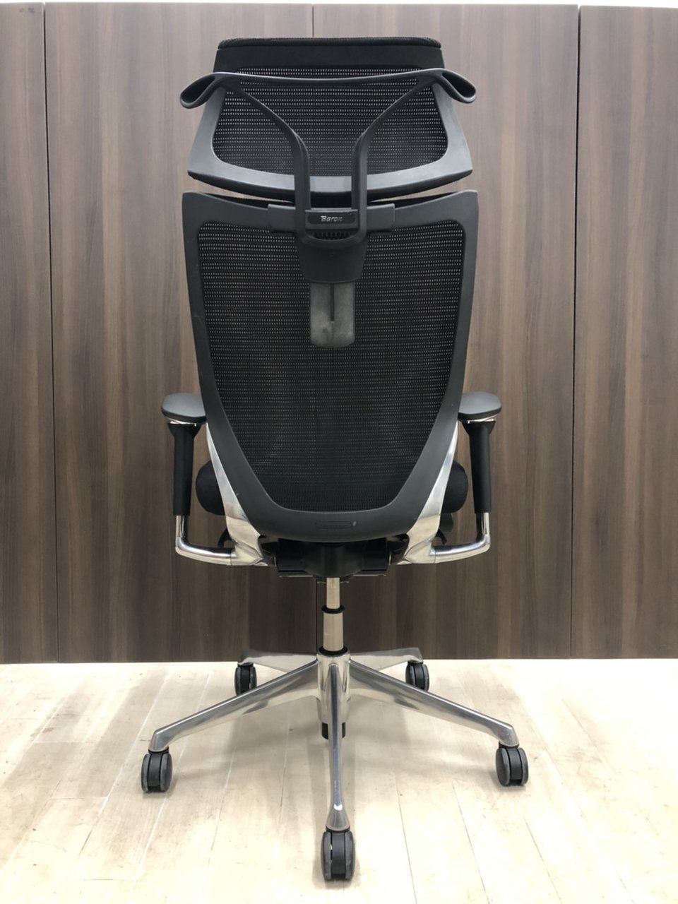 【オフィスの執務室、会議室におすすめ!】■オカムラ(okamura)製 バロン(Baron)チェア 肘付き ハイバック ■背・座面メッシュ ■可動肘 ■ヘッドレスト付き ■ブラック【硬めの座面が大人気!国産メッシュチェアの代表格!】