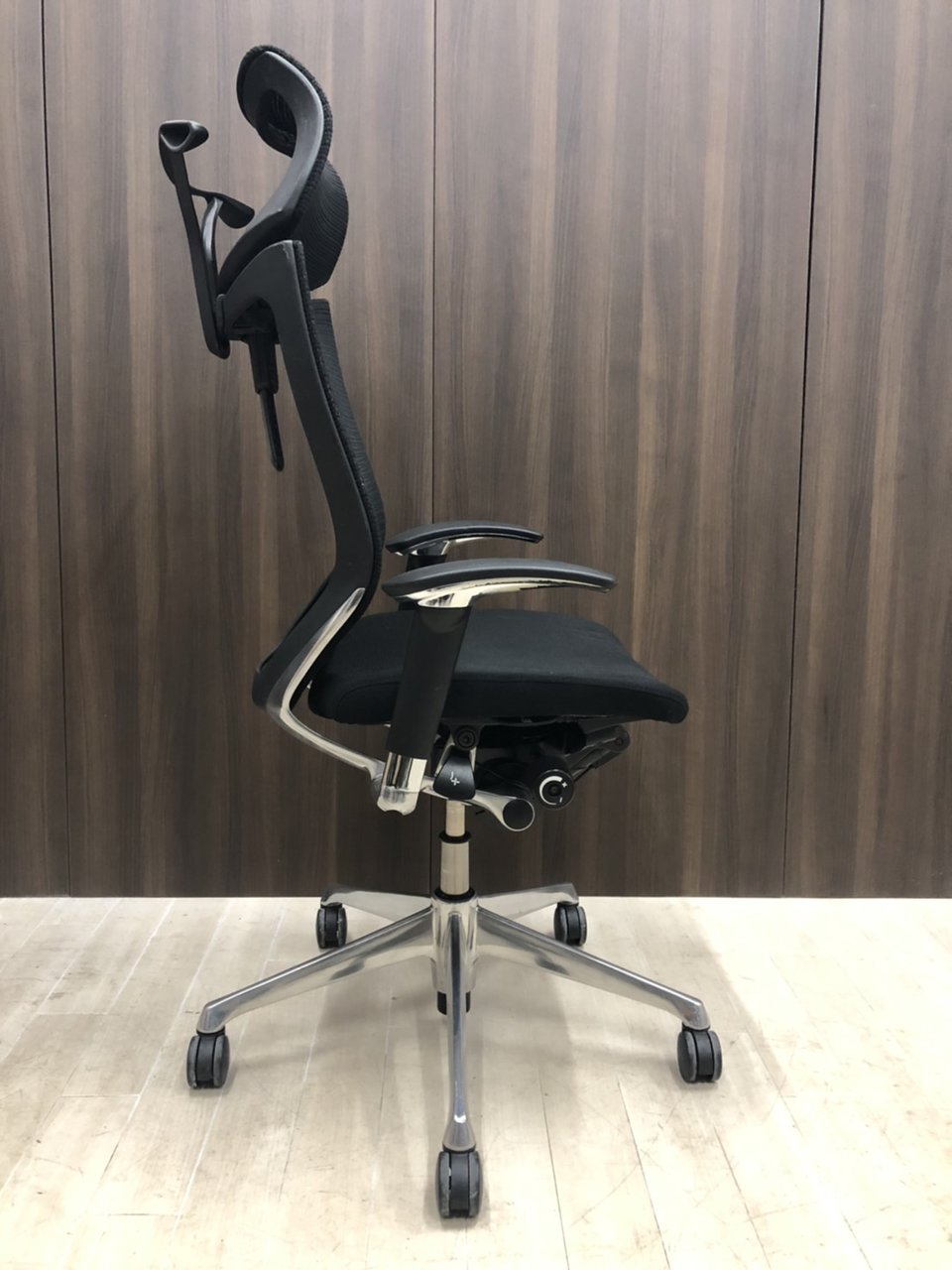 気に入っているのはリクライニング調整の自由さです。同じオカムラ社製の上位モデルや下位モデルも、角度が5段階程度の固定位置だったり、リクライニング強度も4段階だったりしますが、バロンチェアはどちらも無段階。つまり完全に好きな位置、好きな強度に調整することができます。