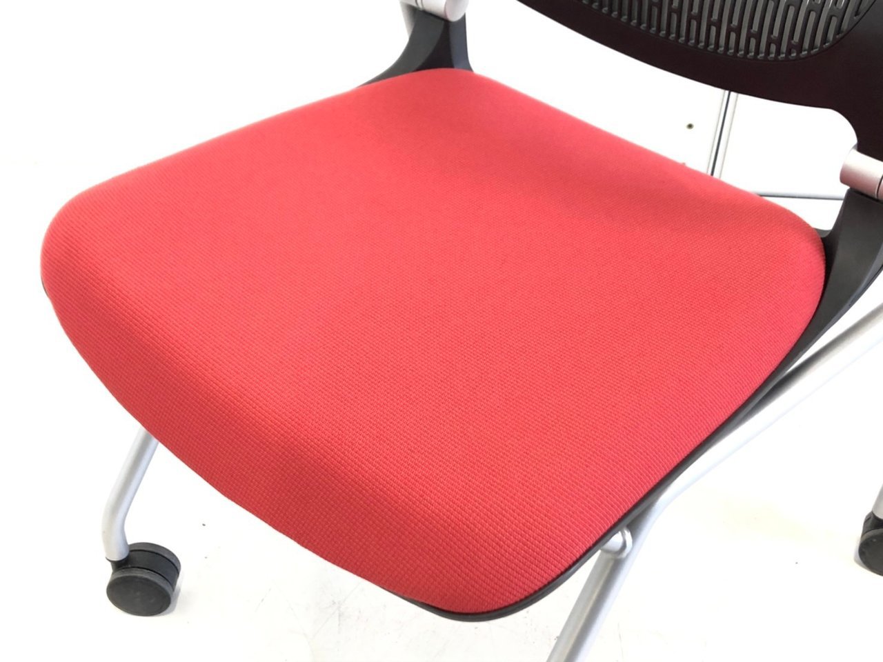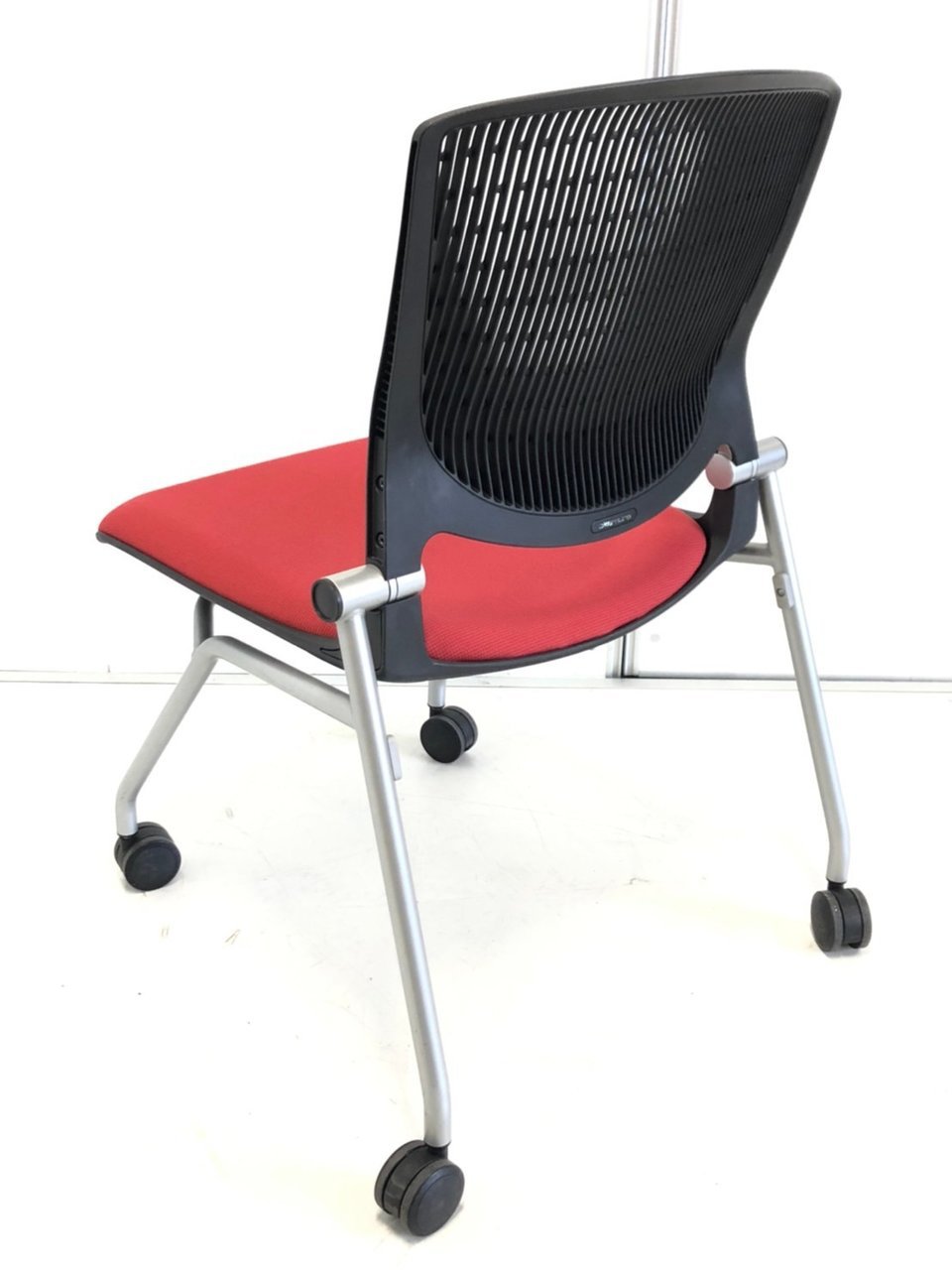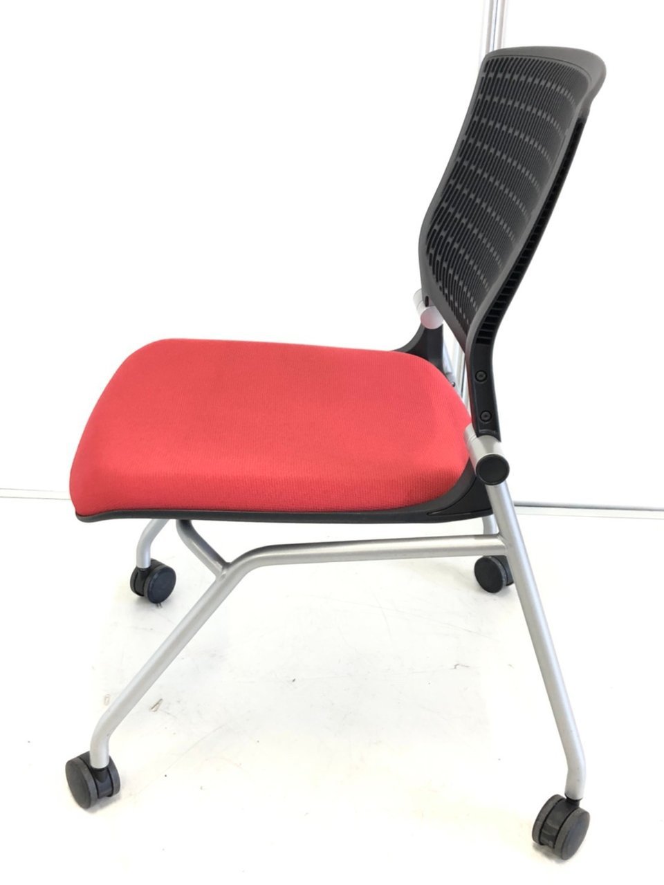 【在庫入替セール】【8脚限定】【しなやかにワーカーを受け止める洗練されたデザイン!使わない時は平行に重ねて収納可能!】■オカムラ(okamura)製 グラータ (Grata) 肘無し ミーティングチェア ネスティングチェア ■背パッド付き ■キャスター付 ■レッド【K10】