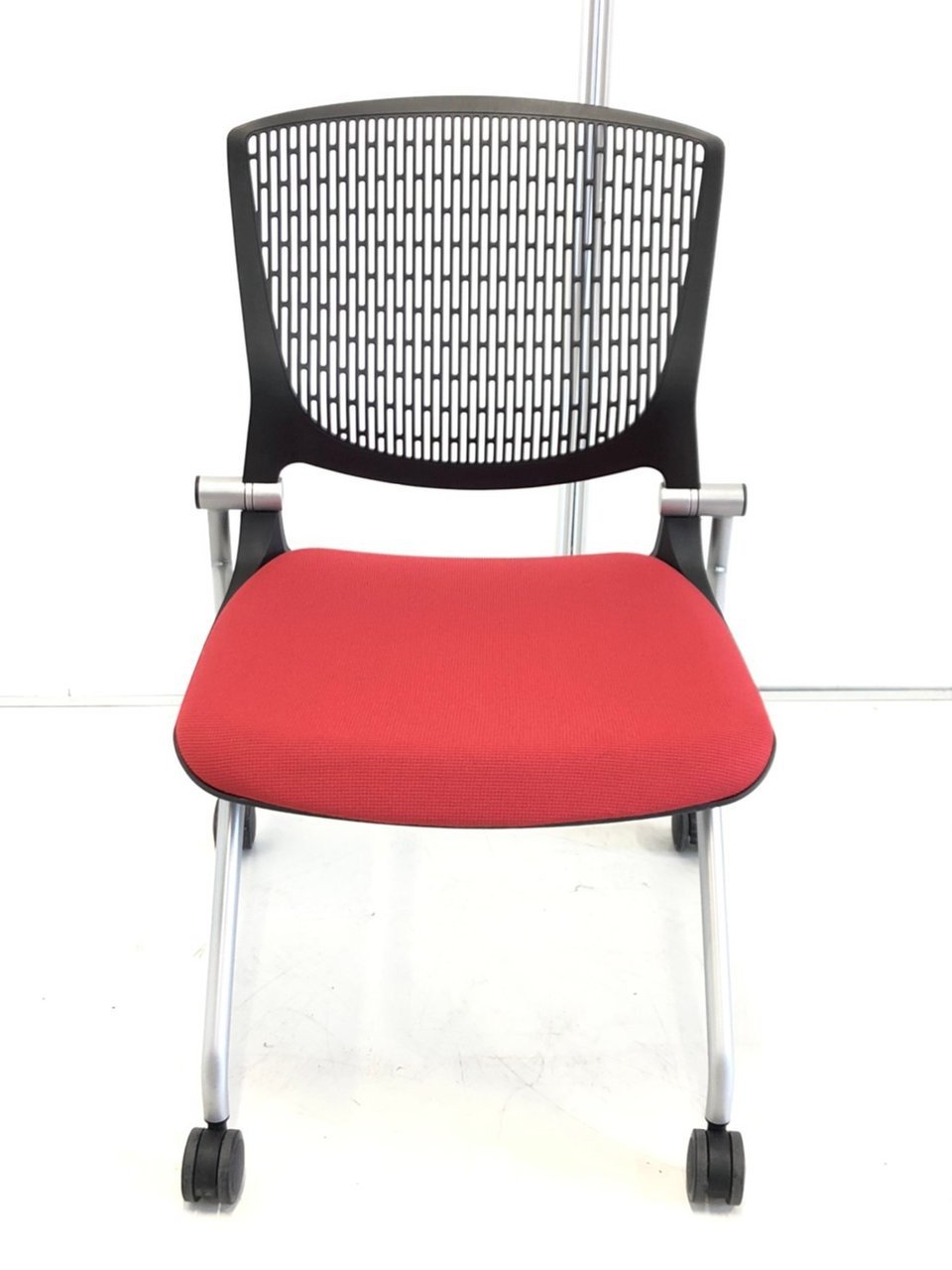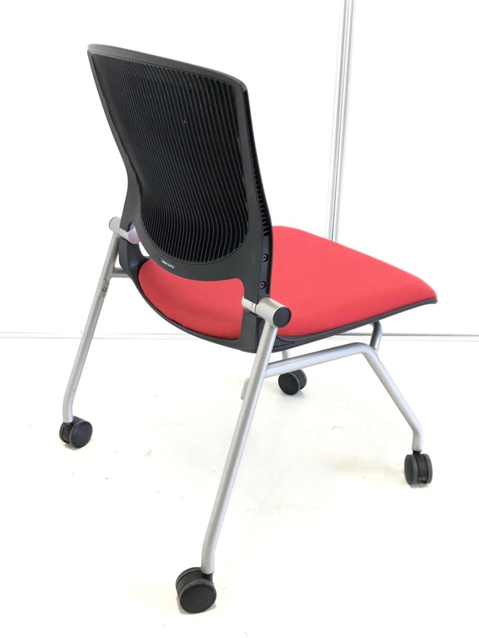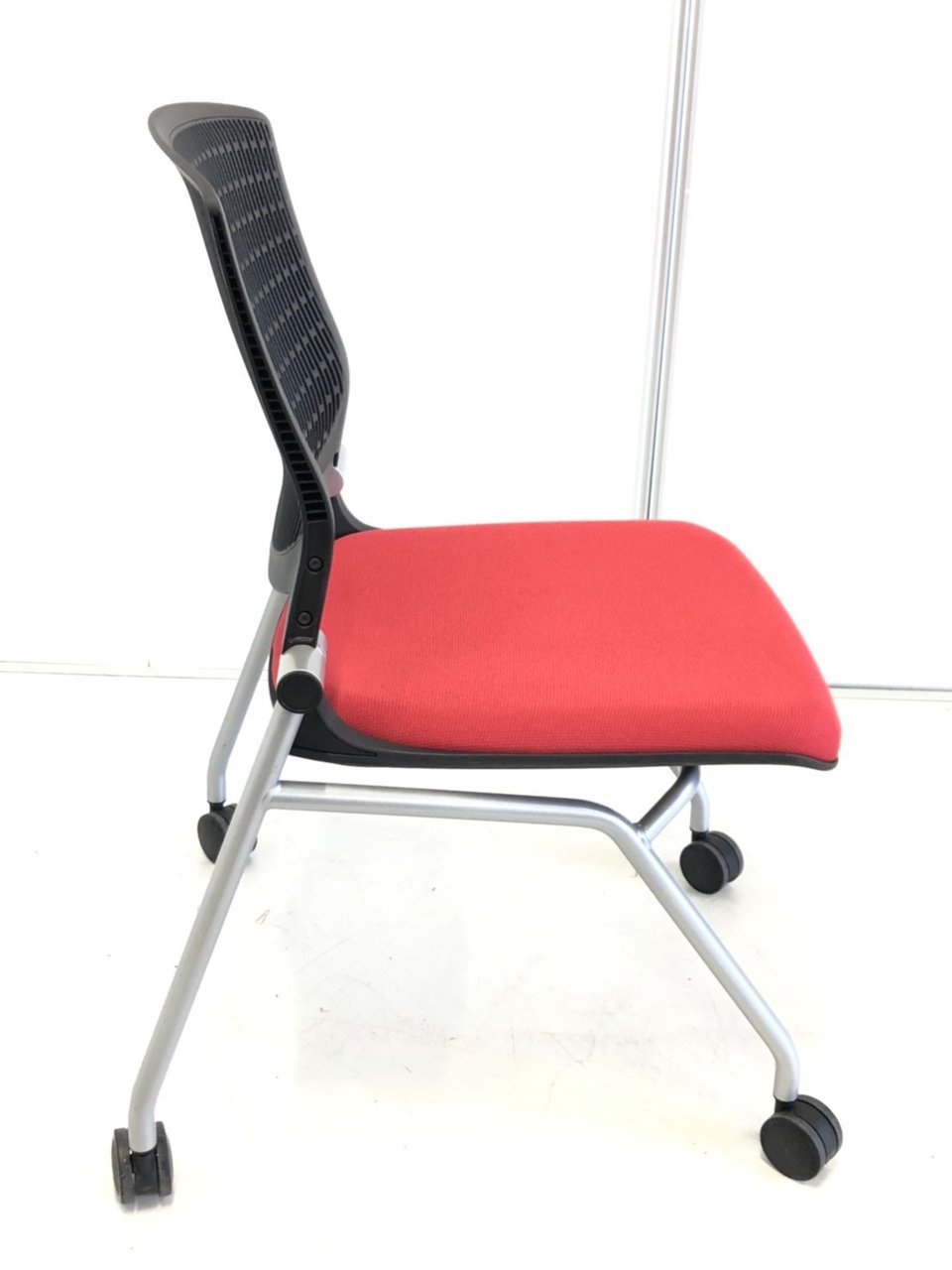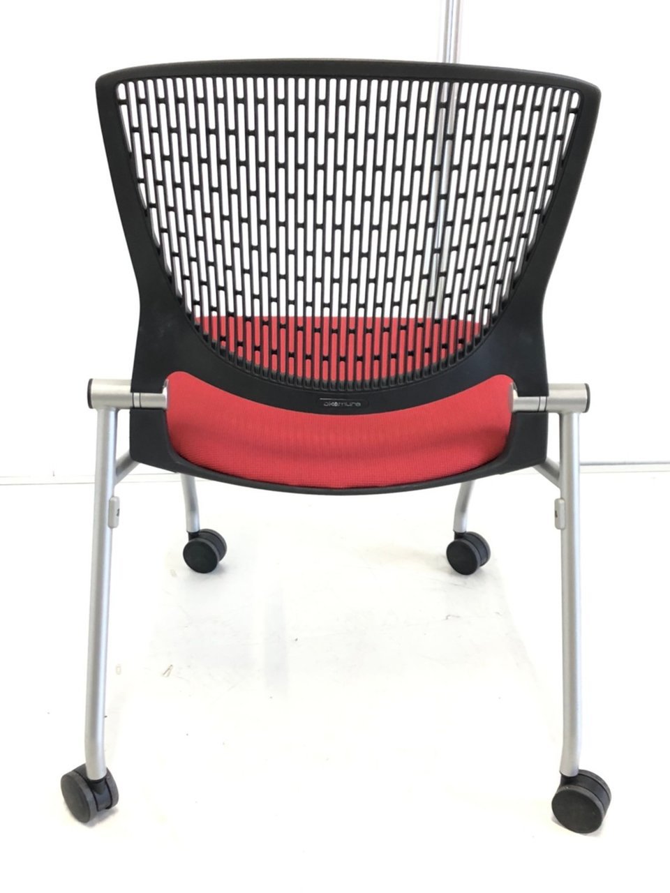 【在庫入替セール】【8脚限定】【しなやかにワーカーを受け止める洗練されたデザイン!使わない時は平行に重ねて収納可能!】■オカムラ(okamura)製 グラータ (Grata) 肘無し ミーティングチェア ネスティングチェア ■背パッド付き ■キャスター付 ■レッド【K10】
