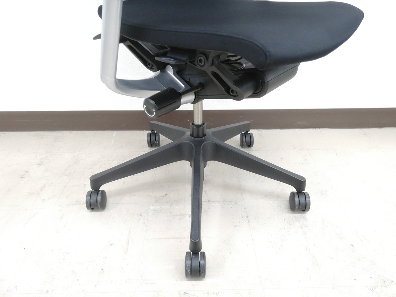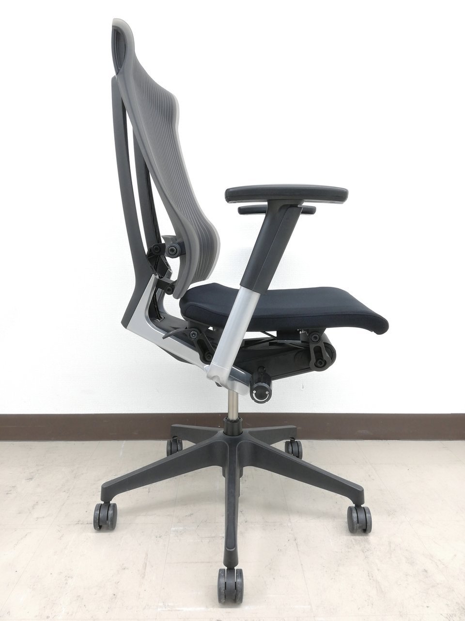 一番の特長は、着座時にチェアがピタっと体にフィットしてくれることです。 人がチェアの座り心地を調節するのではなく、チェアが人に合わせて動くのです!着座時に座面が沈み込みながら後方へスライドし、それと同時に背もたれの腰部分が前にせり出し、「ずっと座っていたくなる」と言われるほどの座り心地に調節してくれます。それを実現しているのが、A.L.S(アクティブ・ランバー・サポート)機構とP.S.S(パッシブ・スライド・シート)機構です。 さらに、背もたれにかかる体圧を徹底的に分析して作られた絶妙なカーブが、常に腰をサポートしつつ背骨のラインに沿ってくれます。