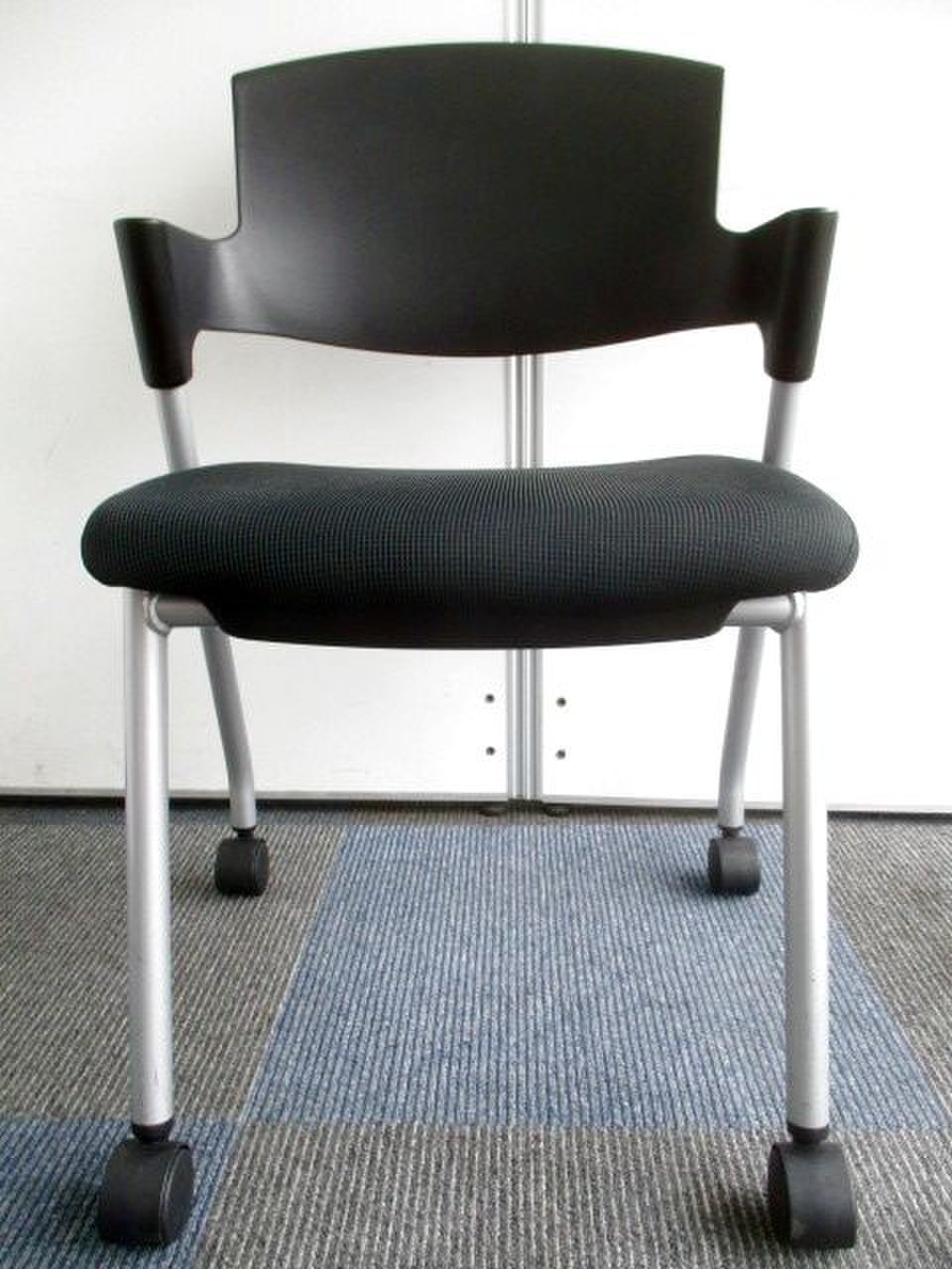 【シンプルスマートなスタッキングチェア!分厚いクッションで長時間でも快適な座り心地!】■スタッキングチェア 肘付ミーティングチェア ■固定肘 ■キャスター付 ■ブラック ■背面樹脂/コクヨ(KOKUYO/プロッティ